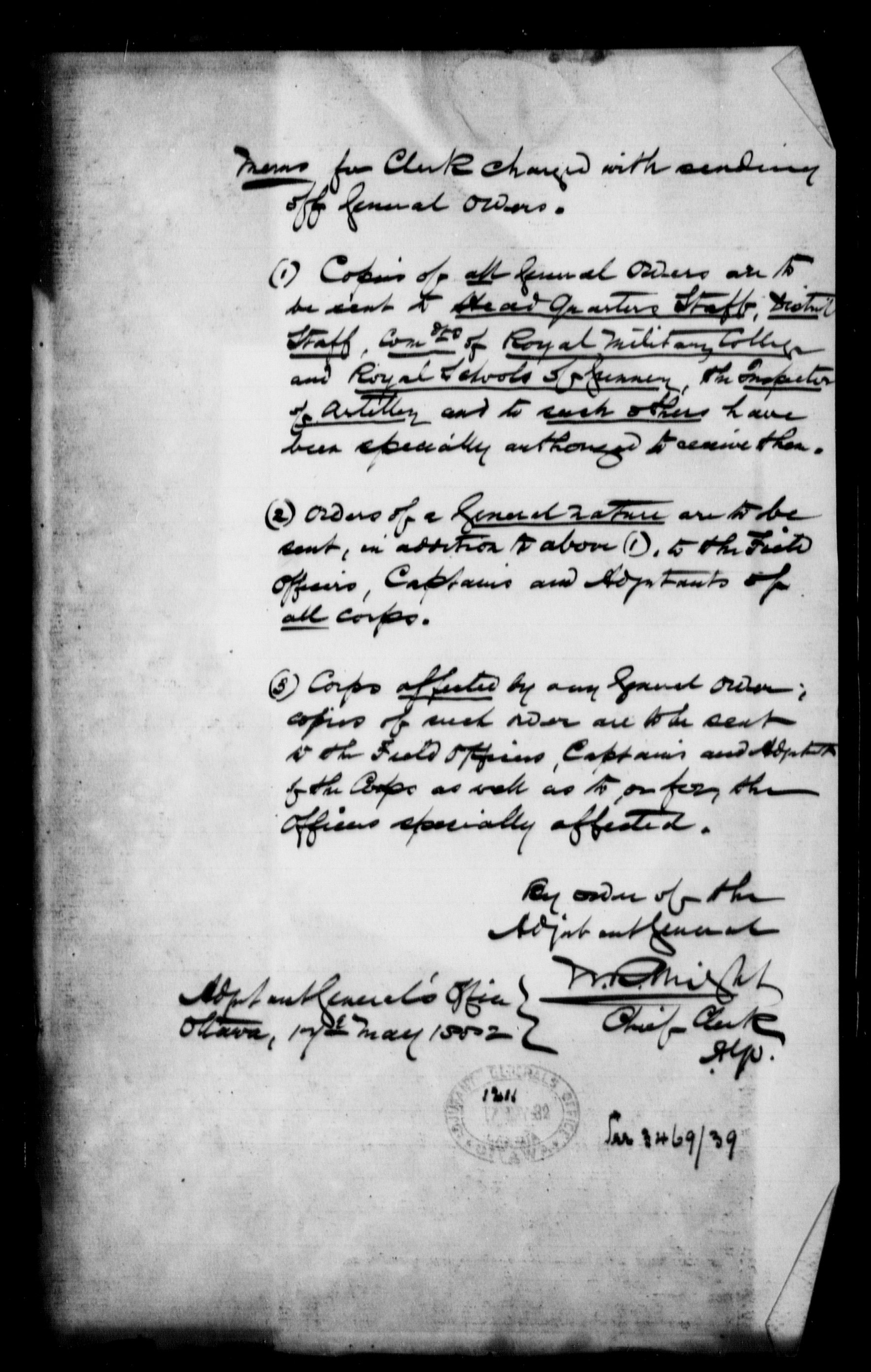 Names and addresses of all officers in receipt of copies of Militia General Orders and of departmental annual reports, 1880-1888 - 6946