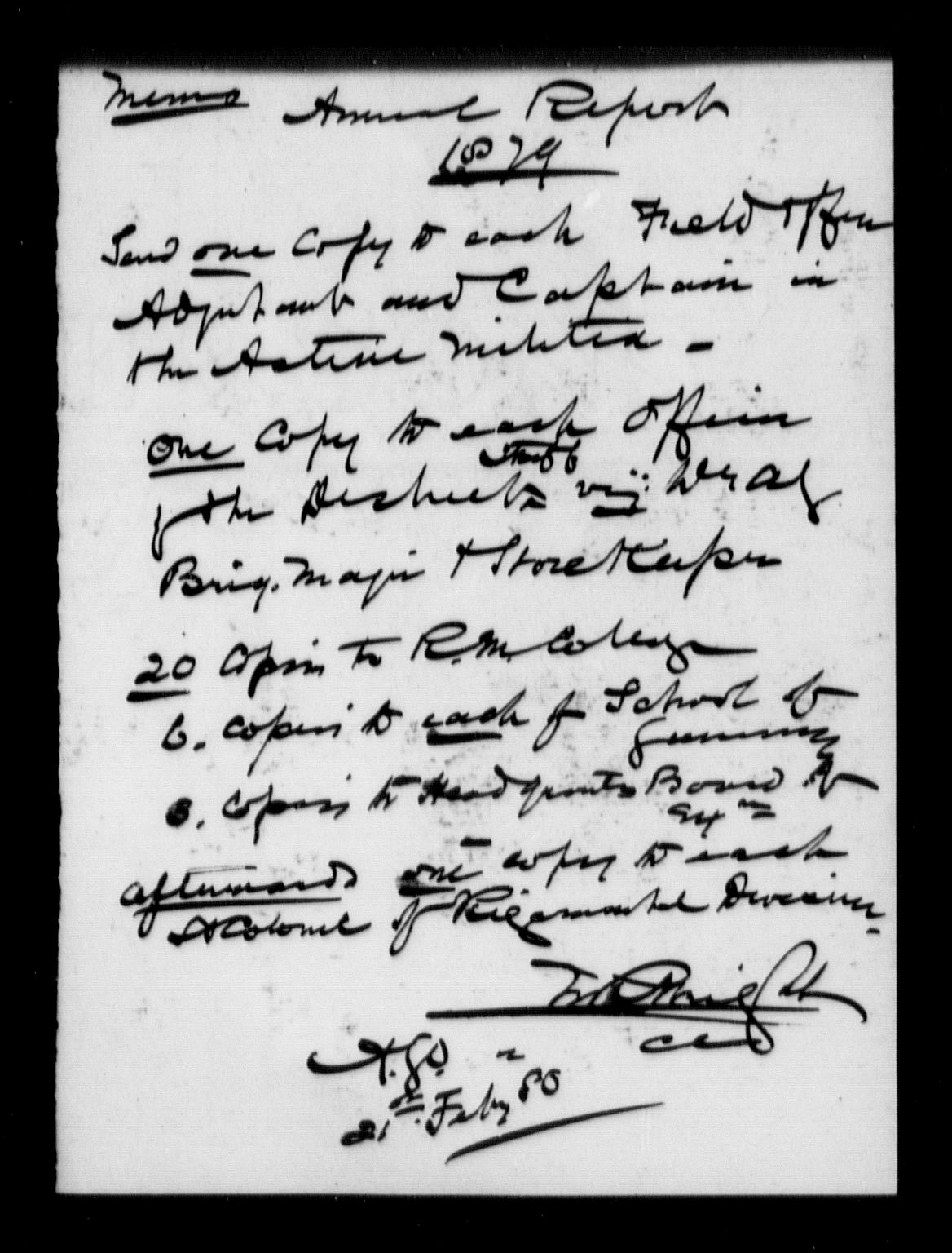 Names and addresses of all officers in receipt of copies of Militia General Orders and of departmental annual reports, 1880-1888 - 6946