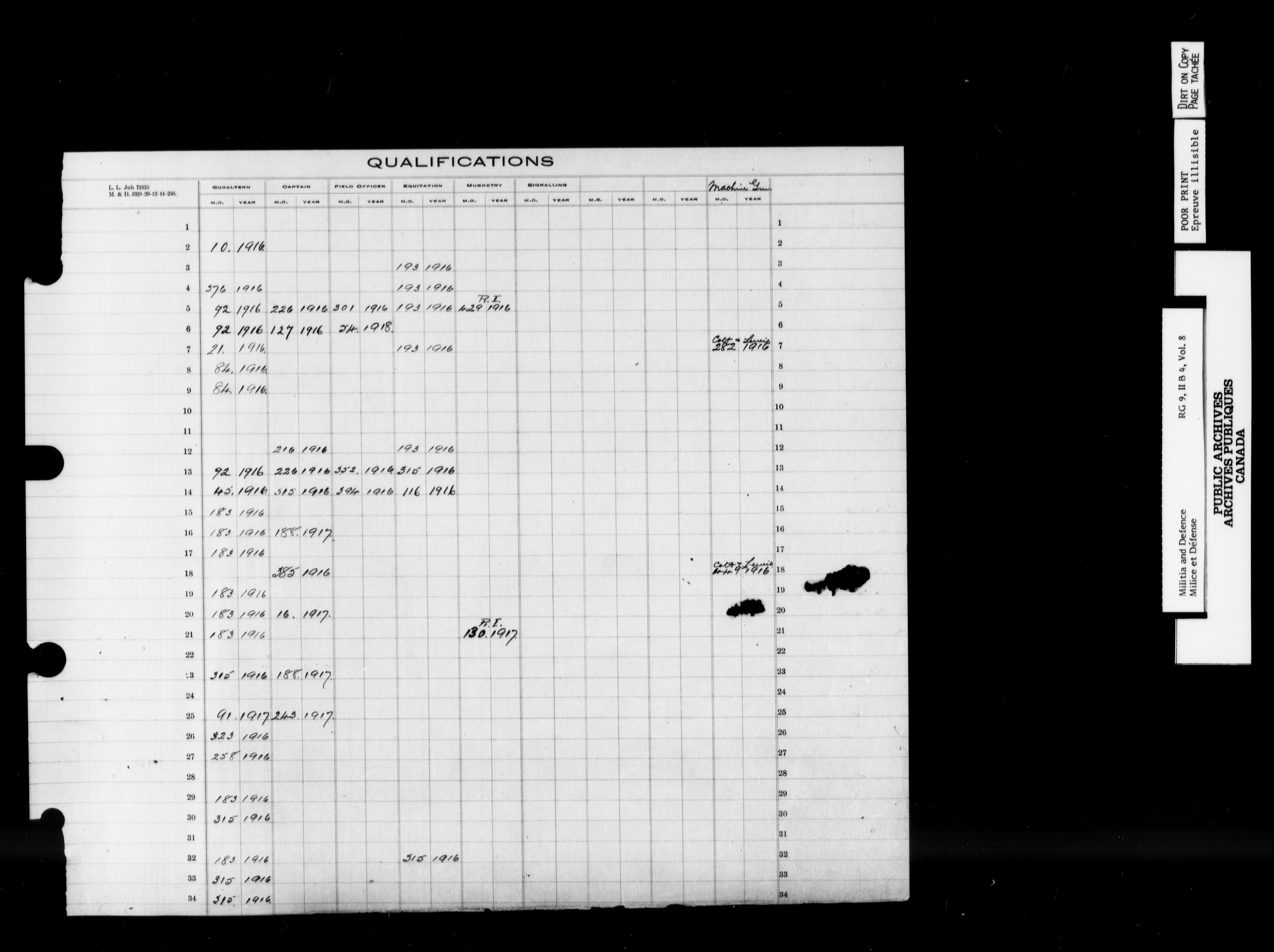 Register G: Infantry, Governor General's Foot Guards to 36th Regiment Infantry, 1907-1921 - 6948