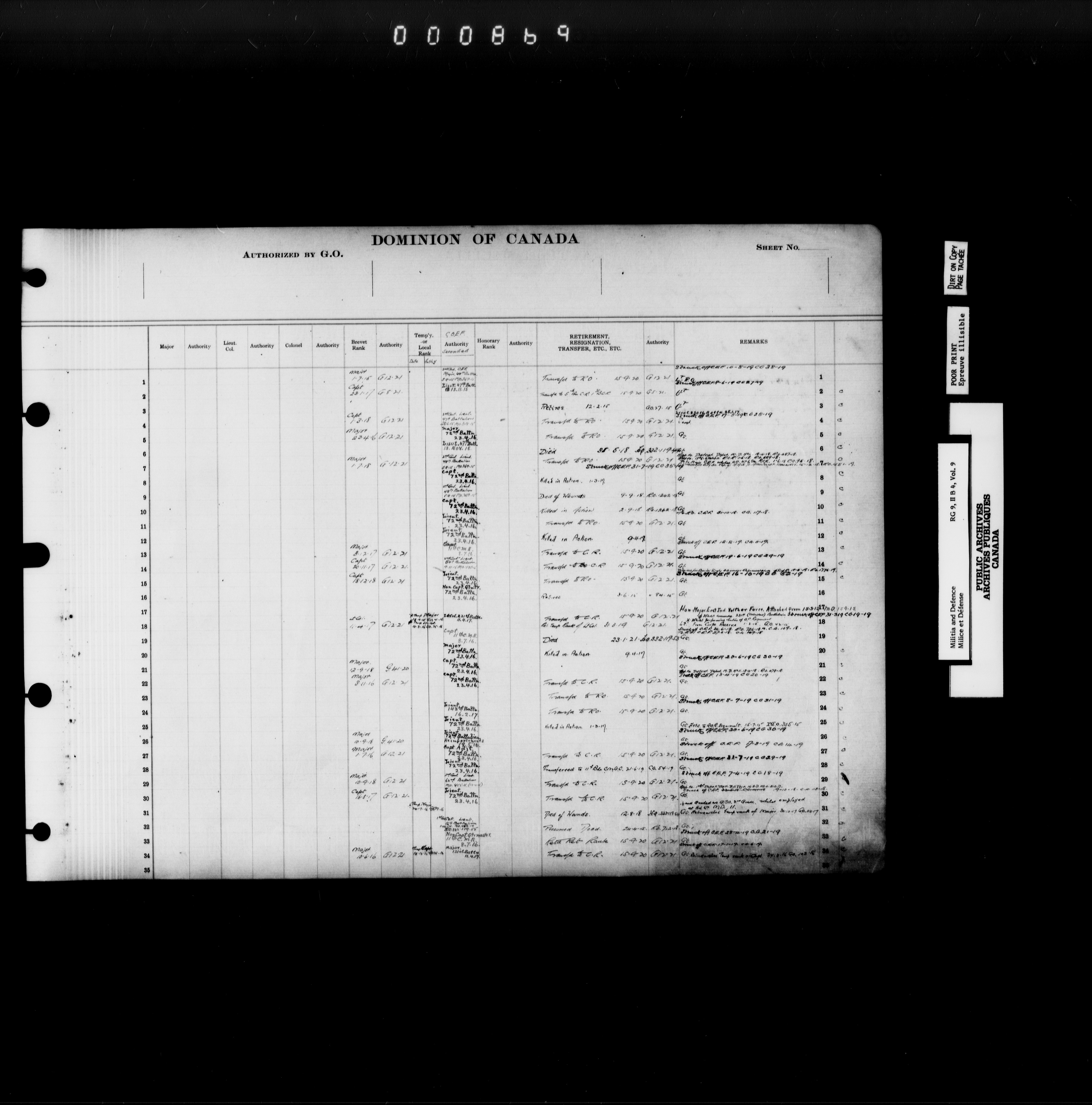 Department of Militia and Defence : Registers and lists of officers : T-6949