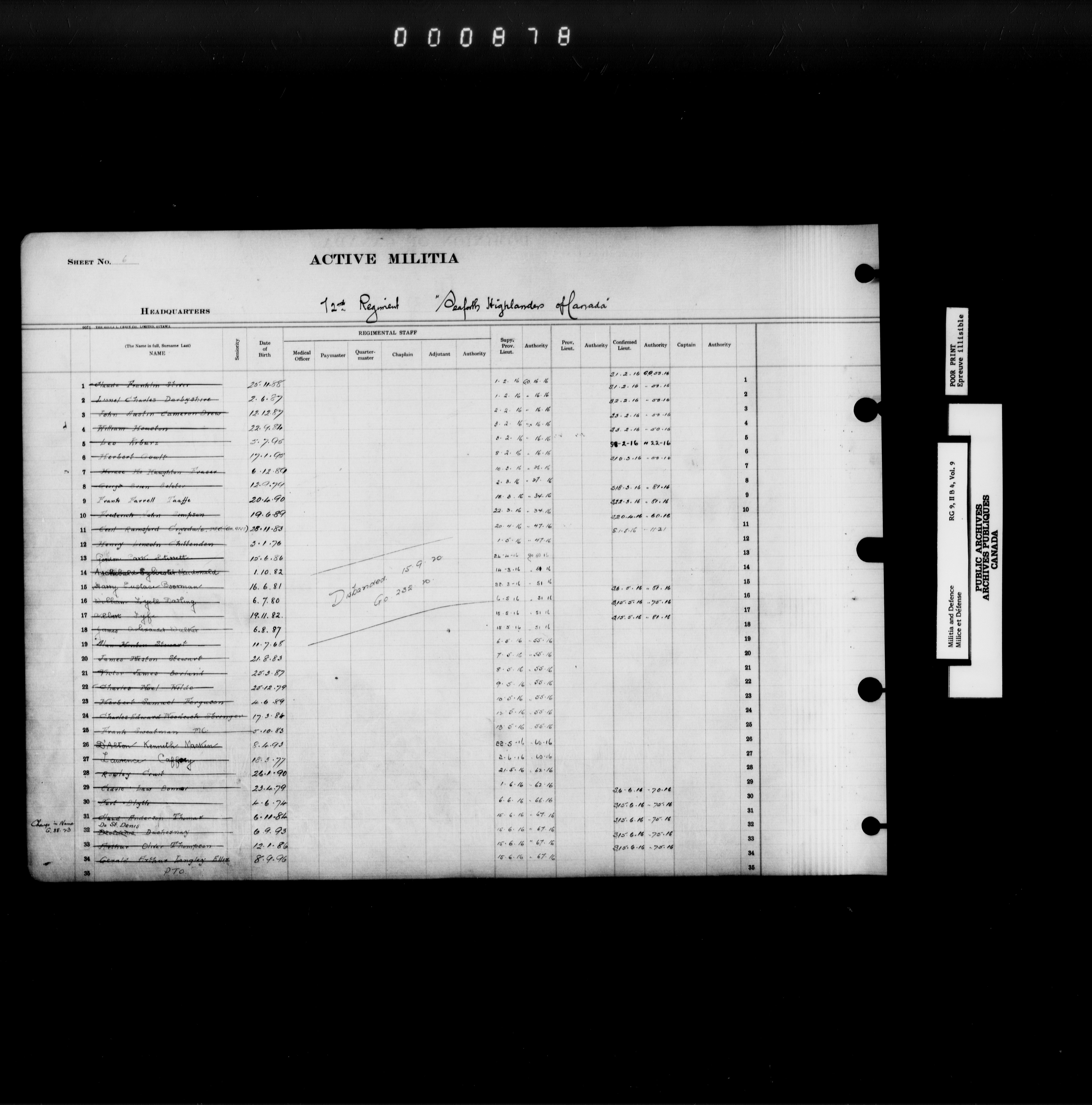 Register G : Infantry, Governor General's Foot Guards to 36th Regiment Infantry, 1907-1921 - 6949