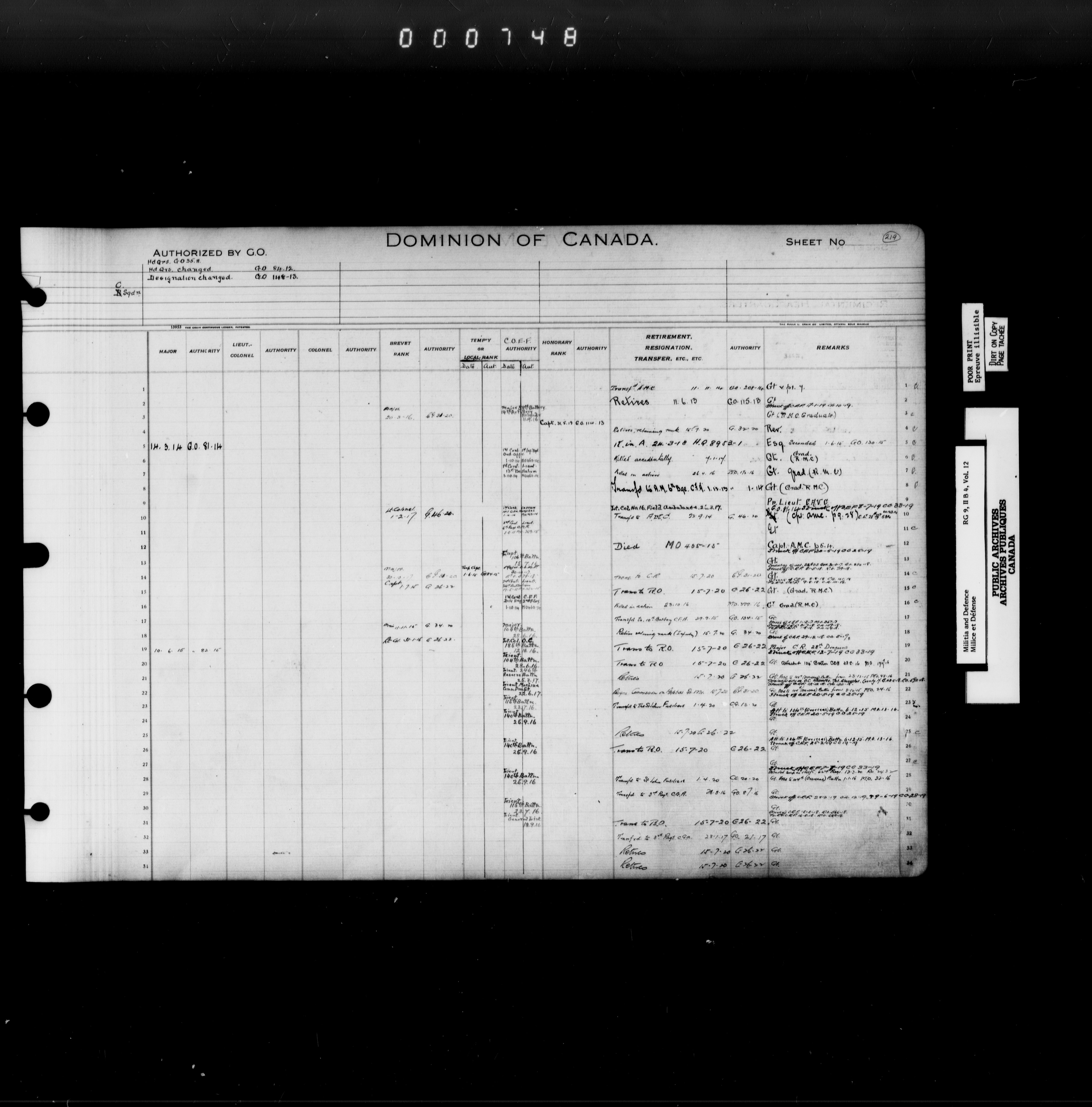Department of Militia and Defence : Registers and lists of officers : T-6952