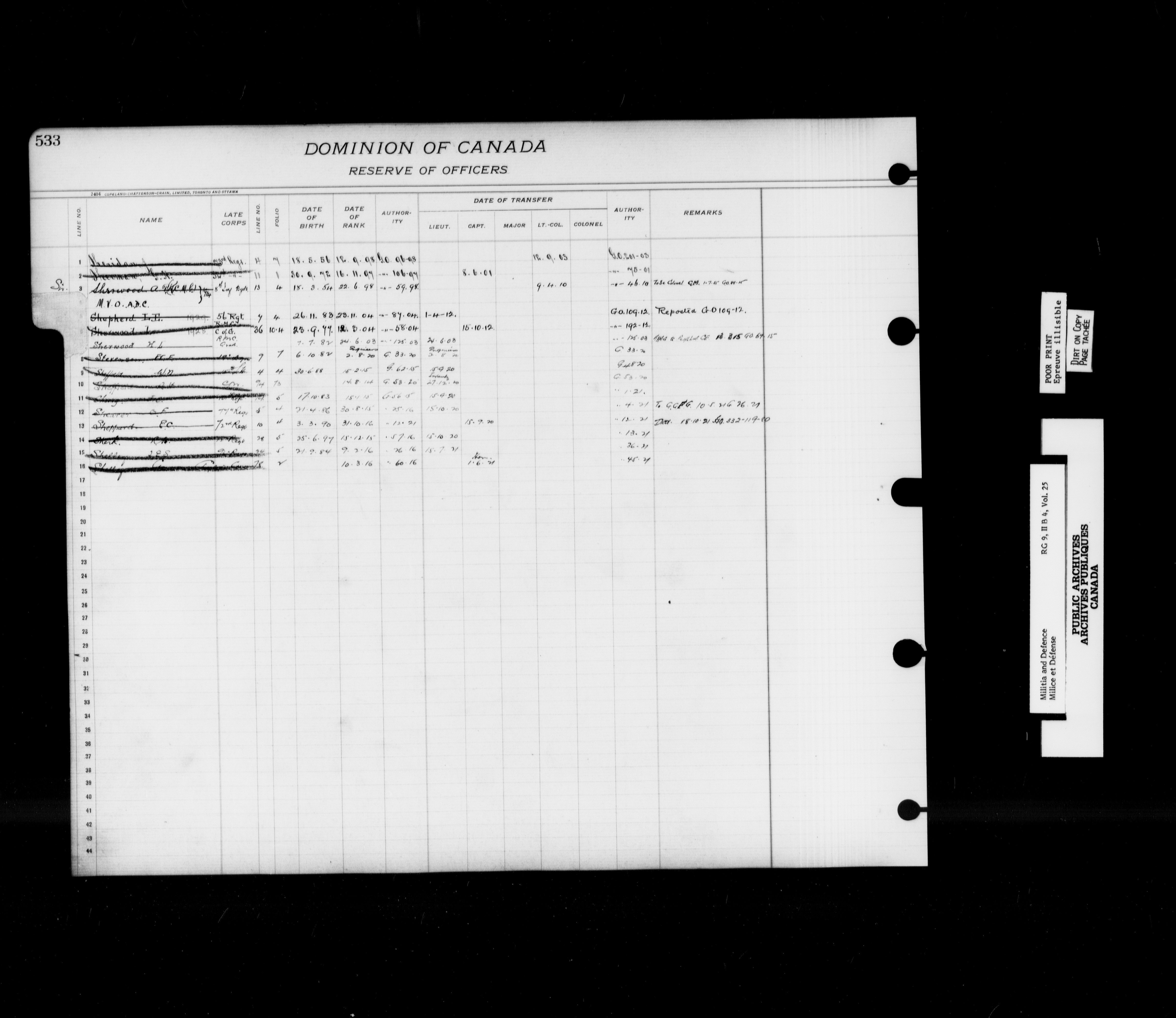 Department of Militia and Defence : Registers and lists of officers : T-6956