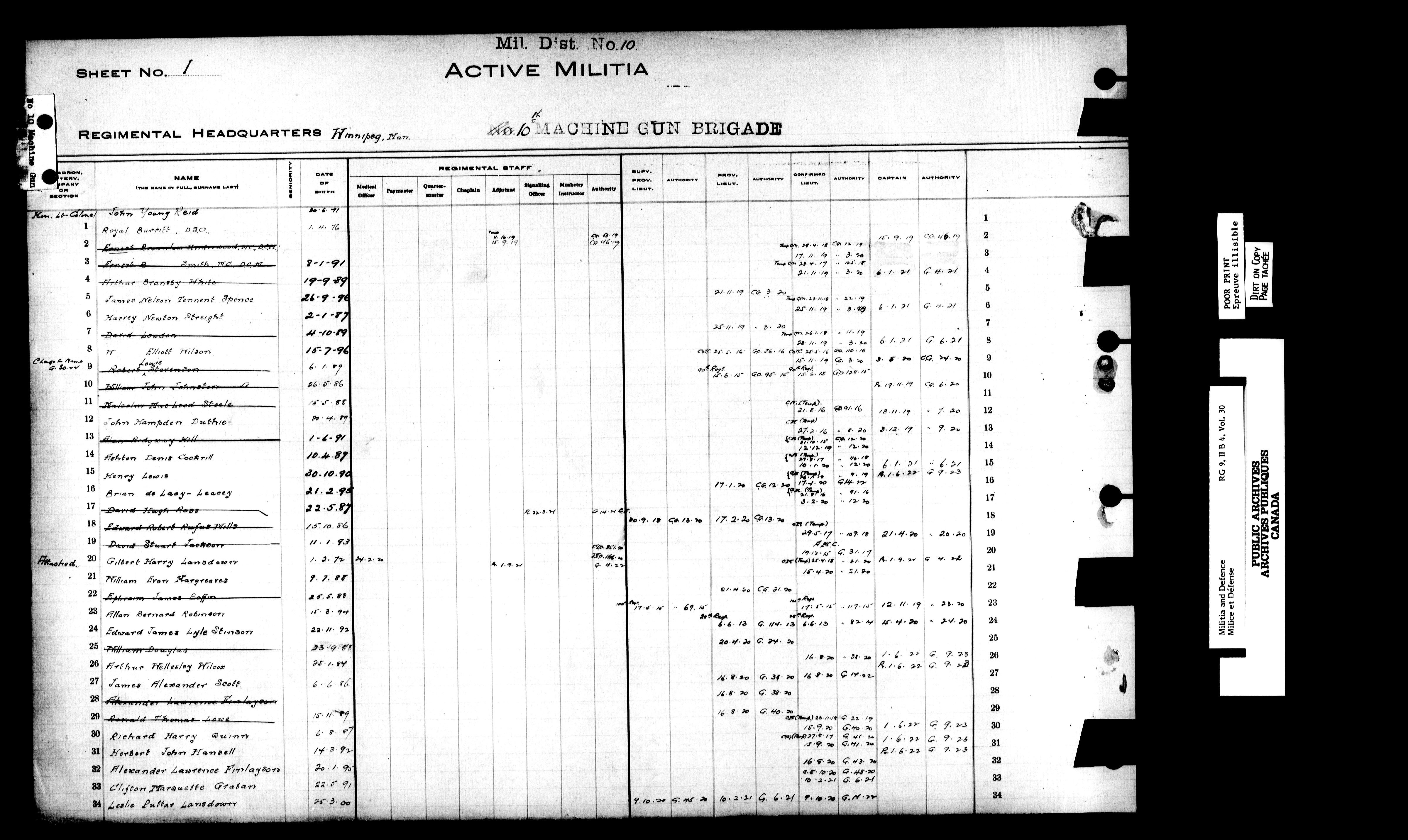 Register of officers of the Active Militia who had war service prior to the First World War - 6958