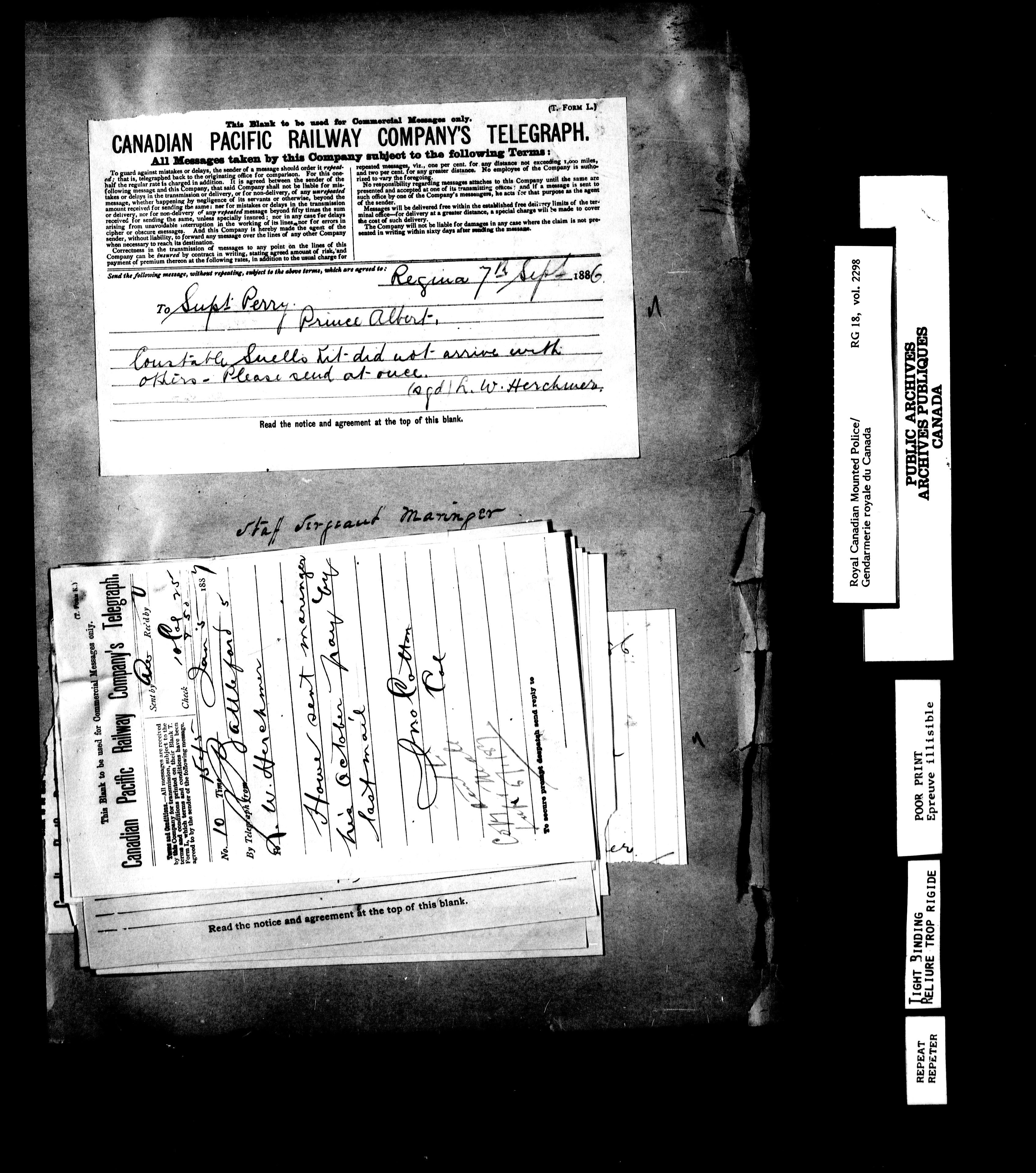 Northwest Mounted Police : Telegrams of the Commissioner's Office, 1882-1919 - 6960