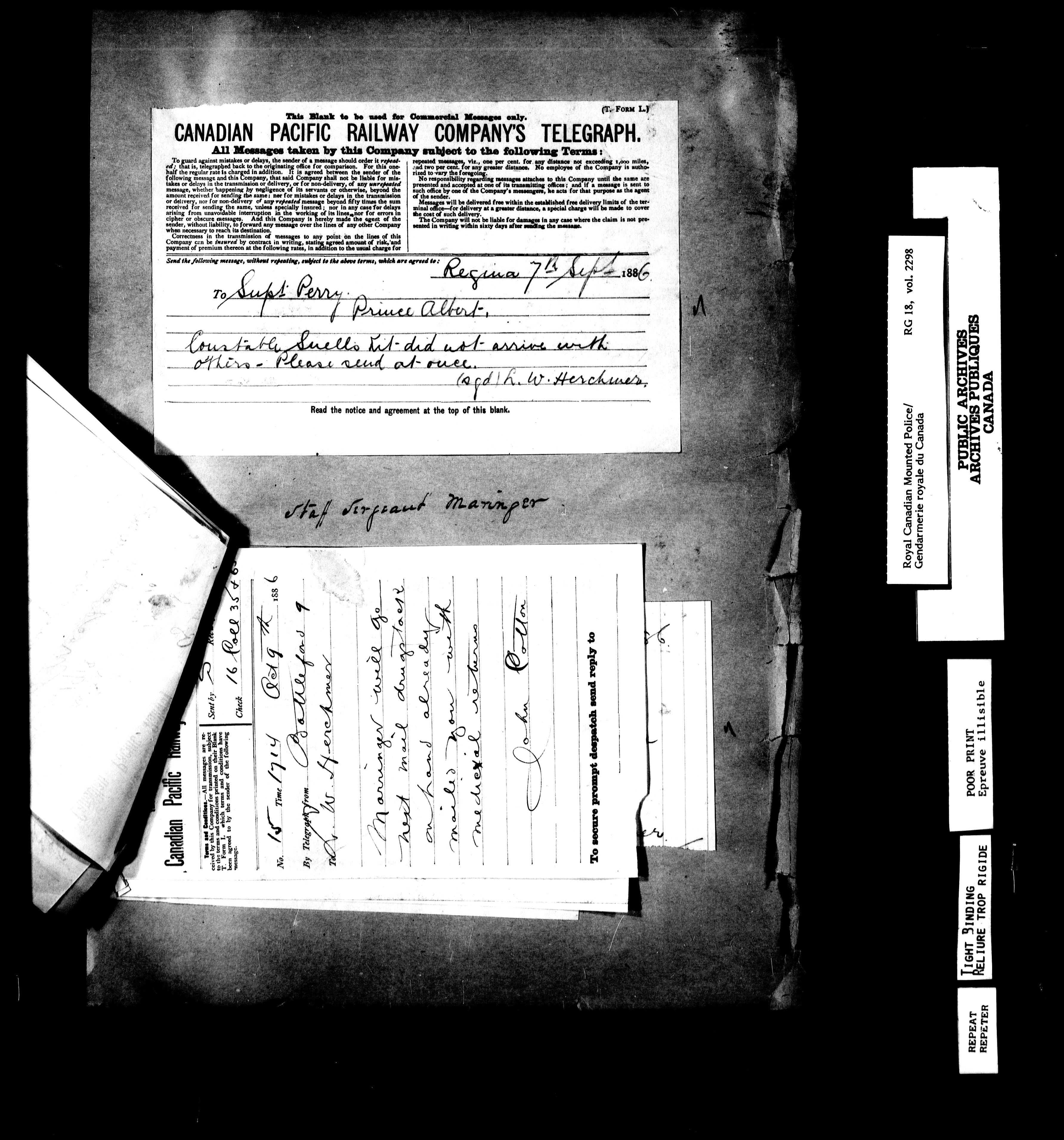 Northwest Mounted Police : Telegrams of the Commissioner's Office, 1882-1919 - 6960
