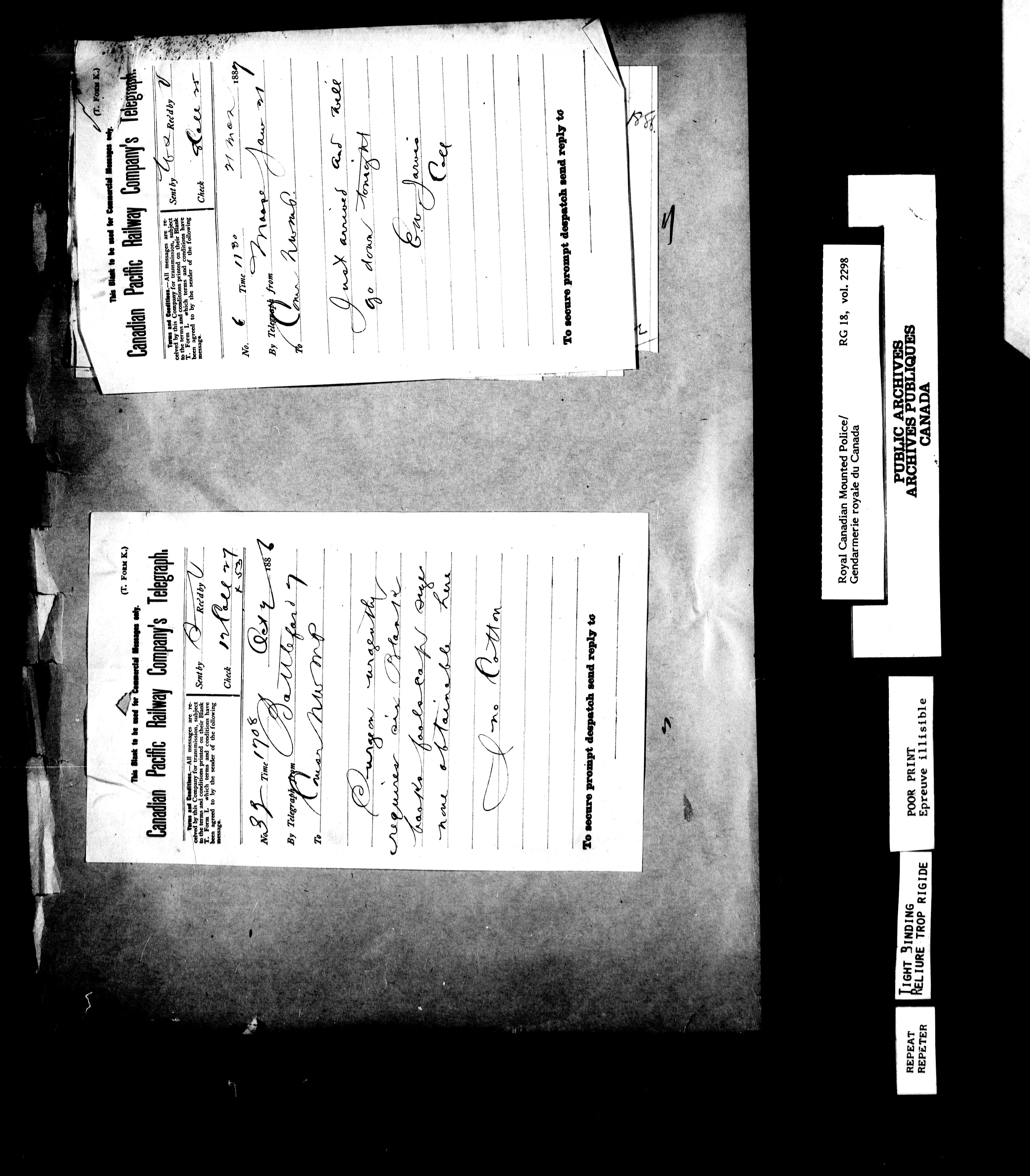 Northwest Mounted Police : Telegrams of the Commissioner's Office, 1882-1919 - 6960