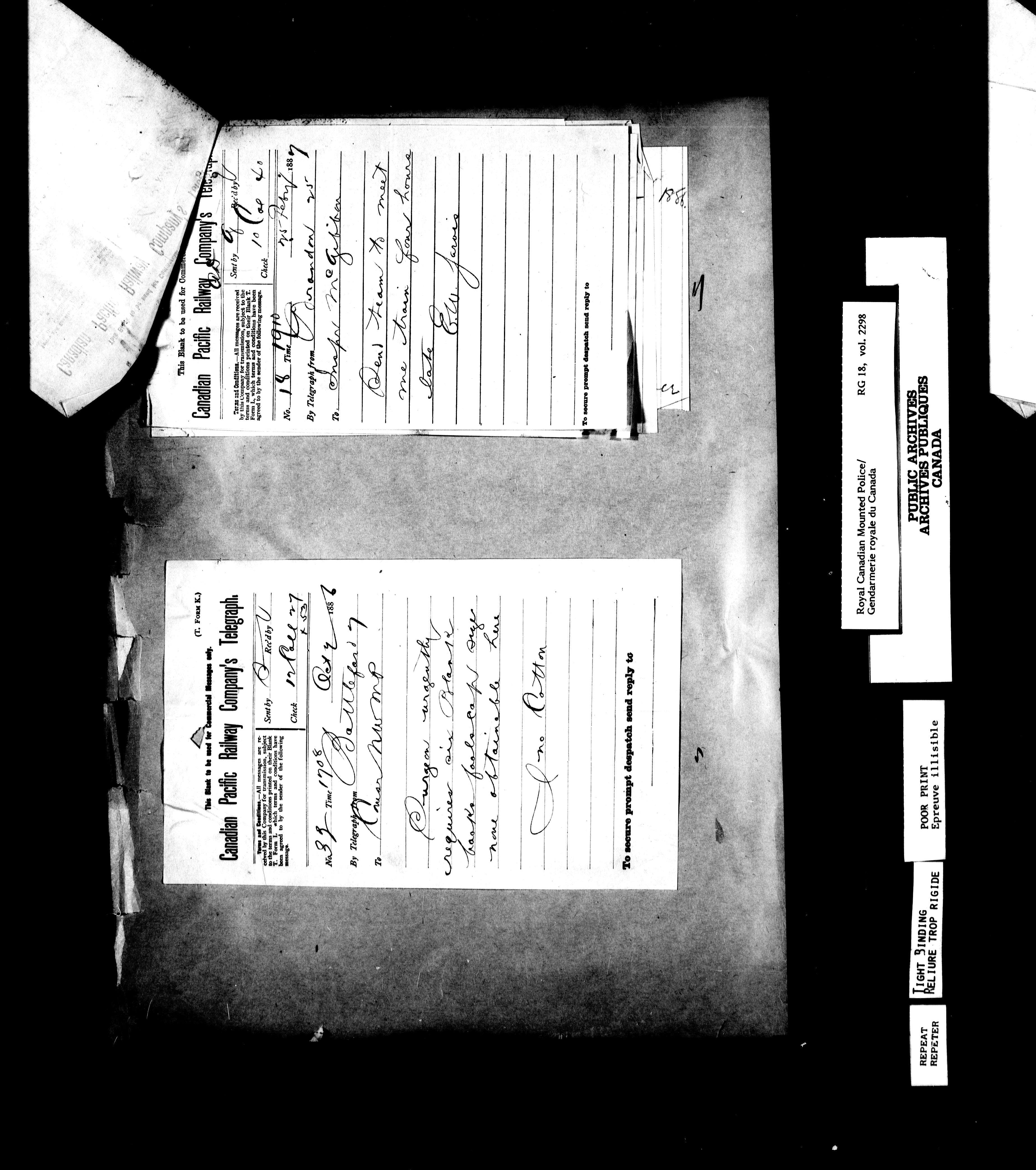 Northwest Mounted Police : Telegrams of the Commissioner's Office, 1882-1919 - 6960