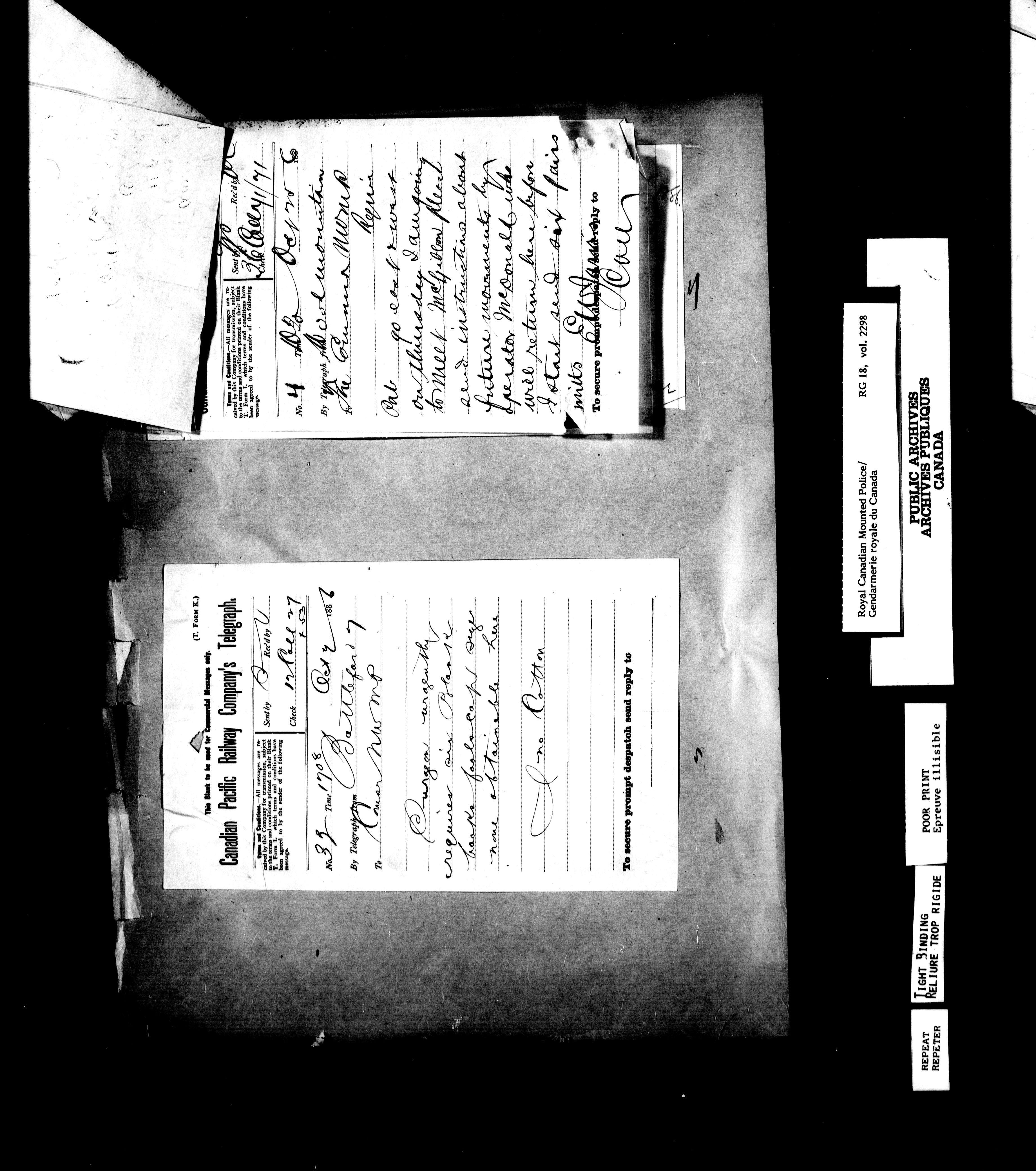 Northwest Mounted Police : Telegrams of the Commissioner's Office, 1882-1919 - 6960