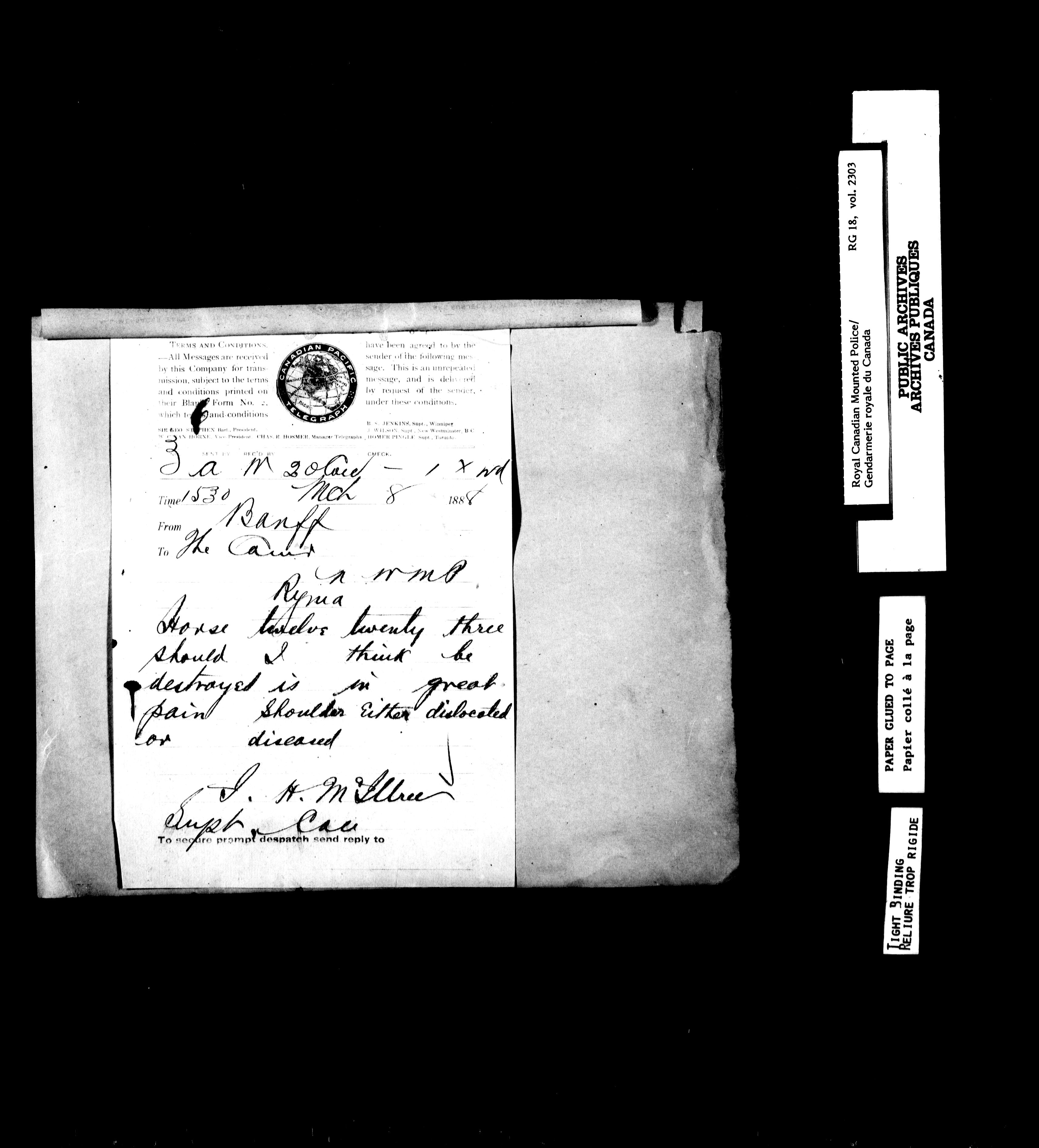 Northwest Mounted Police : Telegrams of the Commissioner's Office, 1882-1919 - 6962