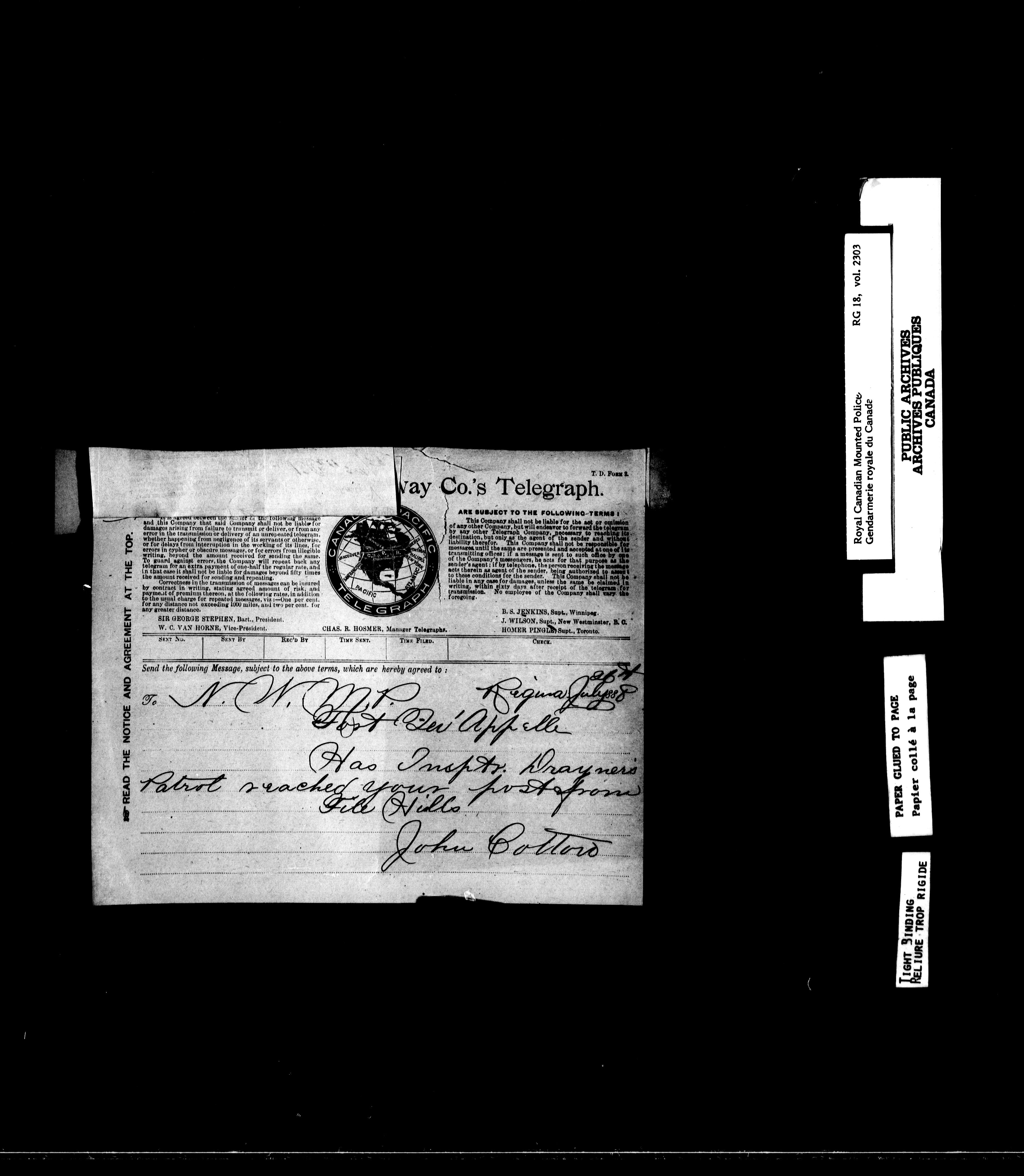 Northwest Mounted Police : Telegrams of the Commissioner's Office, 1882-1919 - 6964