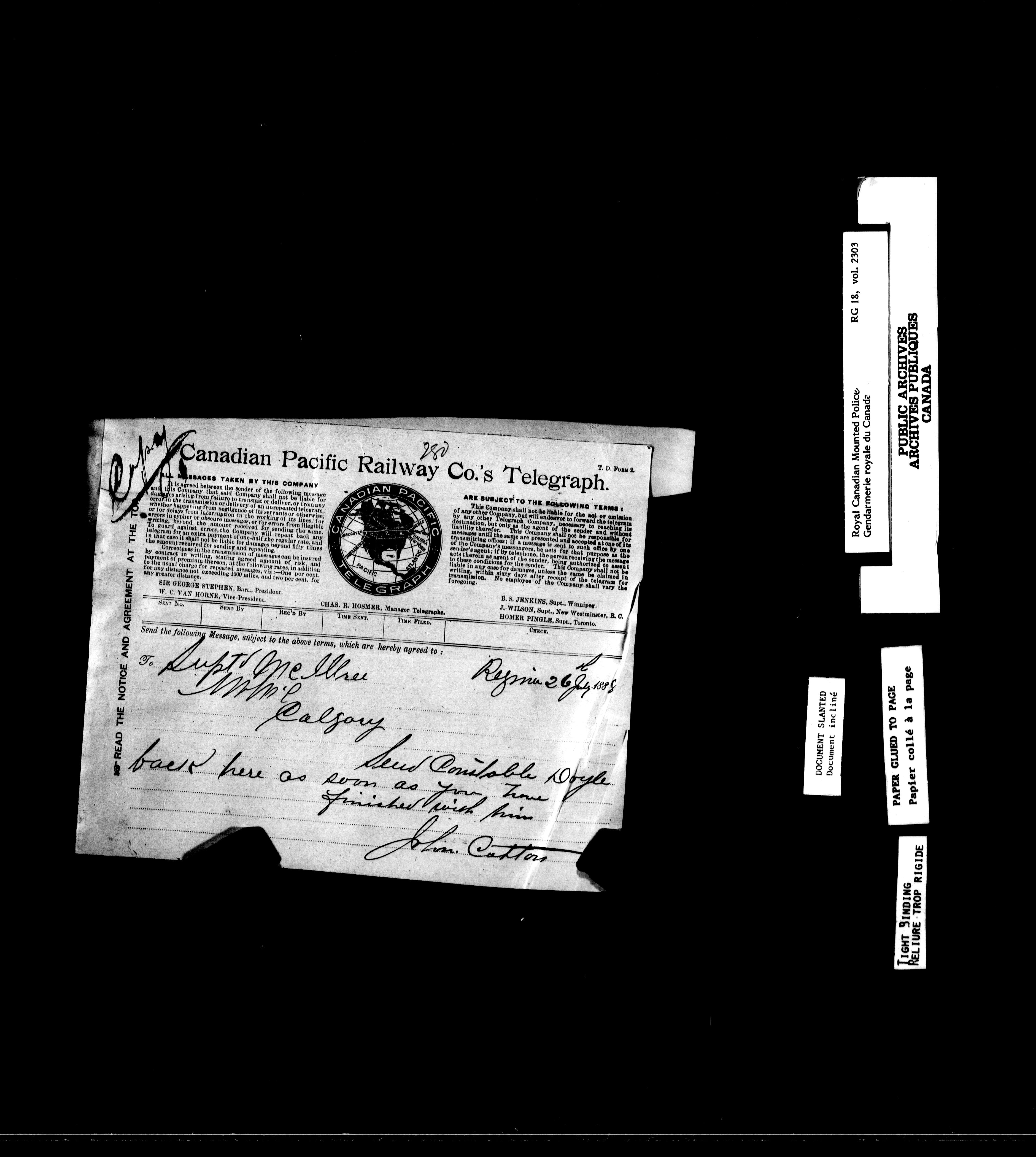 Northwest Mounted Police : Telegrams of the Commissioner's Office, 1882-1919 - 6964