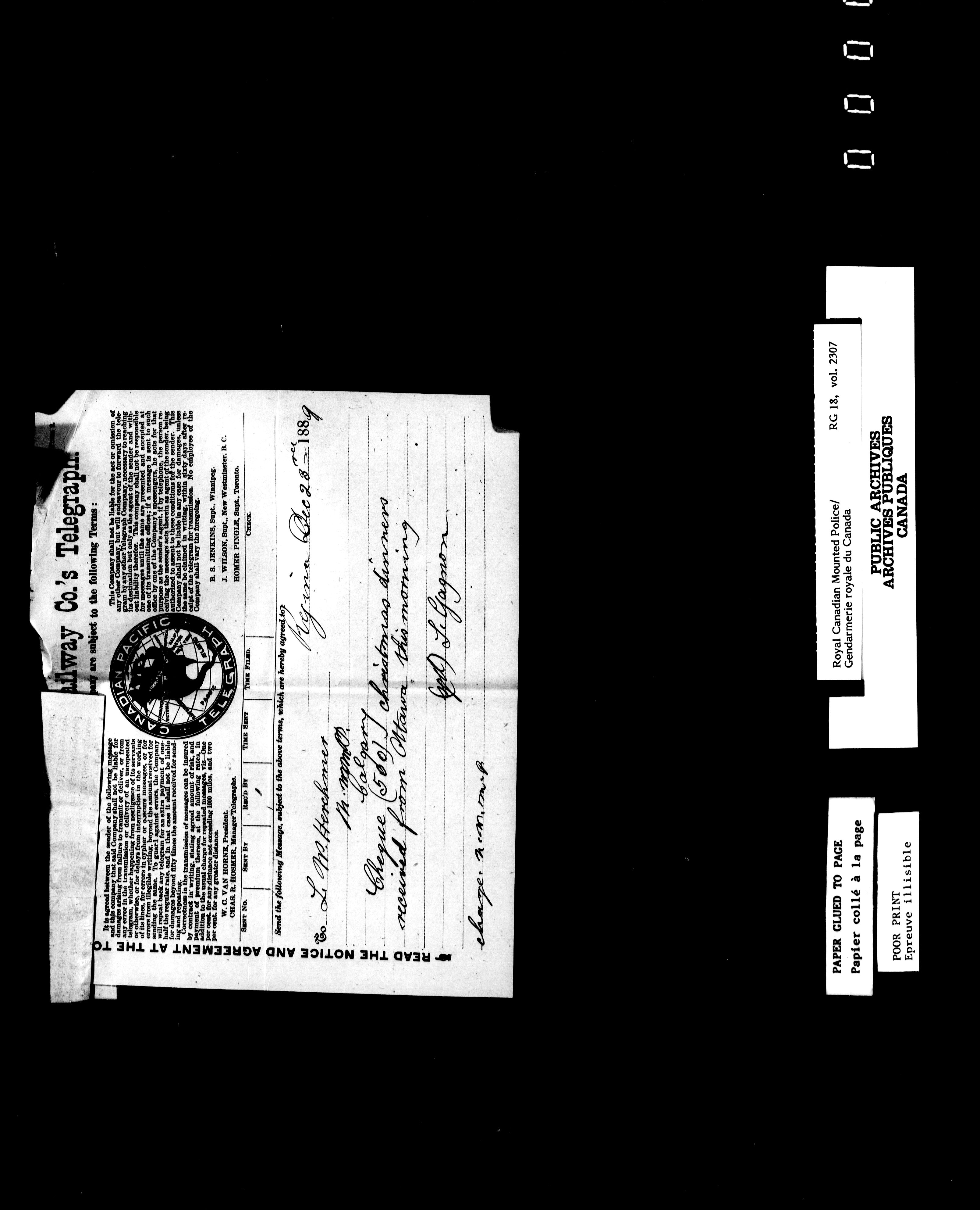 Northwest Mounted Police : Telegrams of the Commissioner's Office, 1882-1919 - 6967
