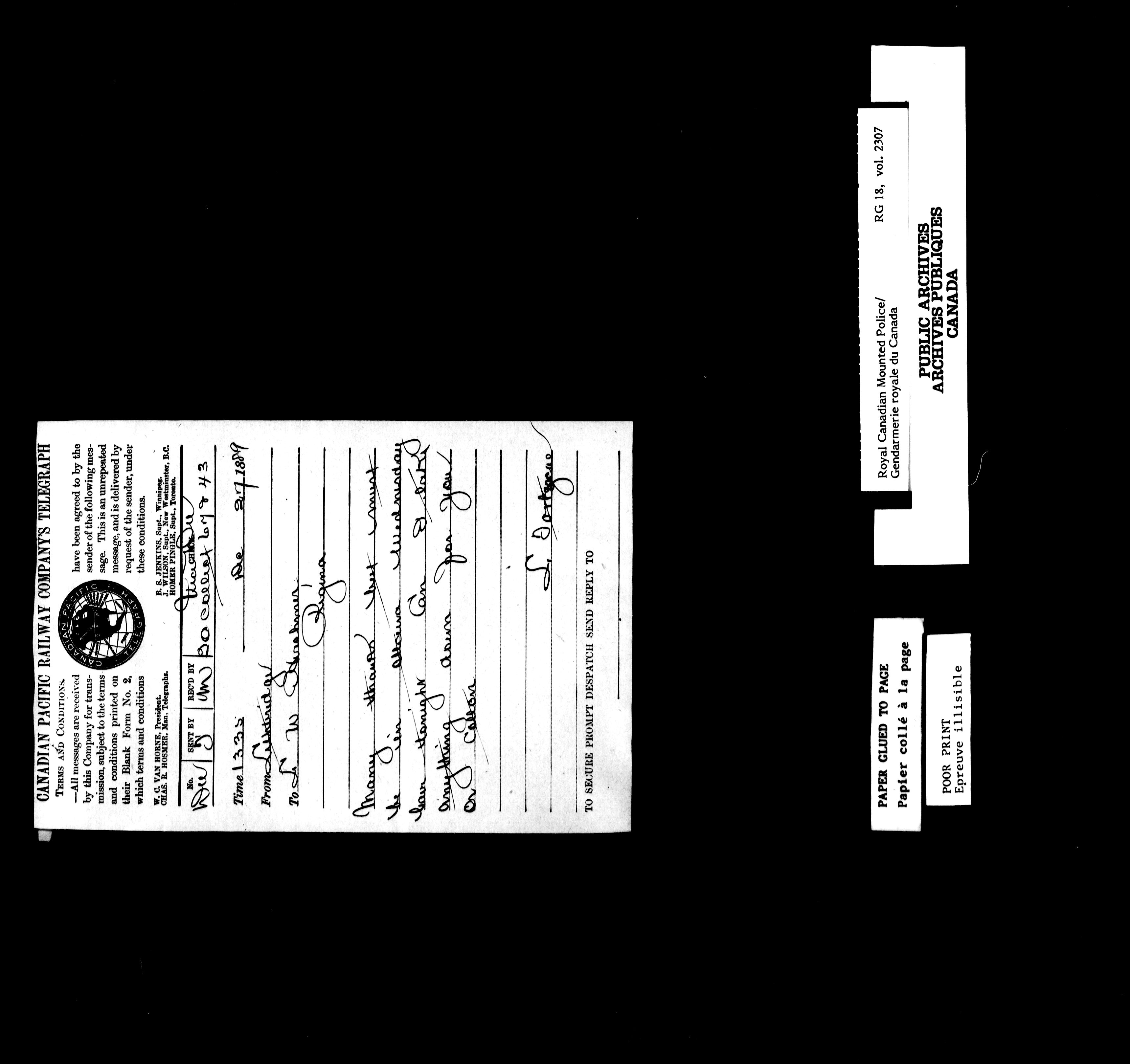 Northwest Mounted Police : Telegrams of the Commissioner's Office, 1882-1919 - 6967