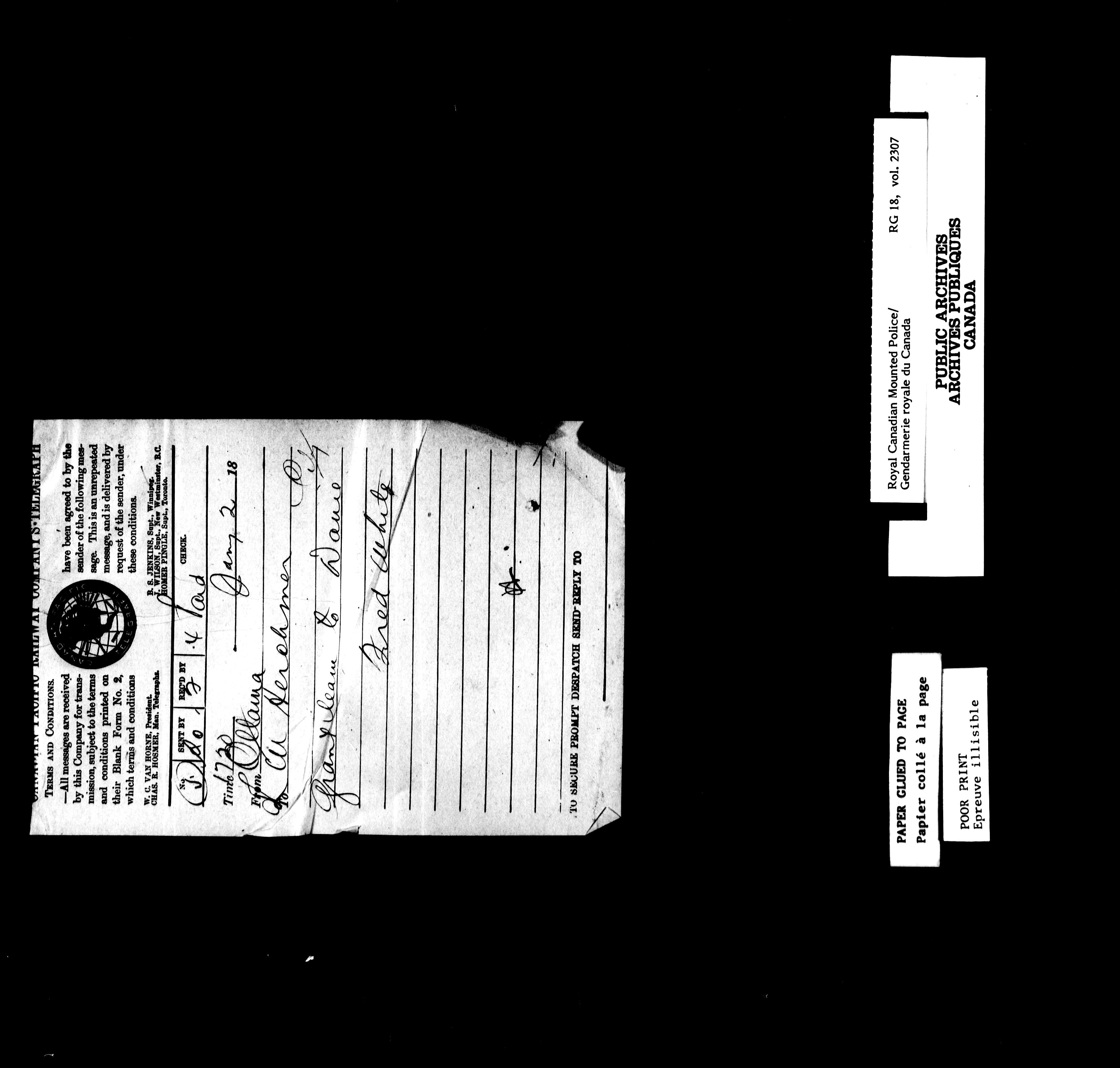 Northwest Mounted Police : Telegrams of the Commissioner's Office, 1882-1919 - 6967