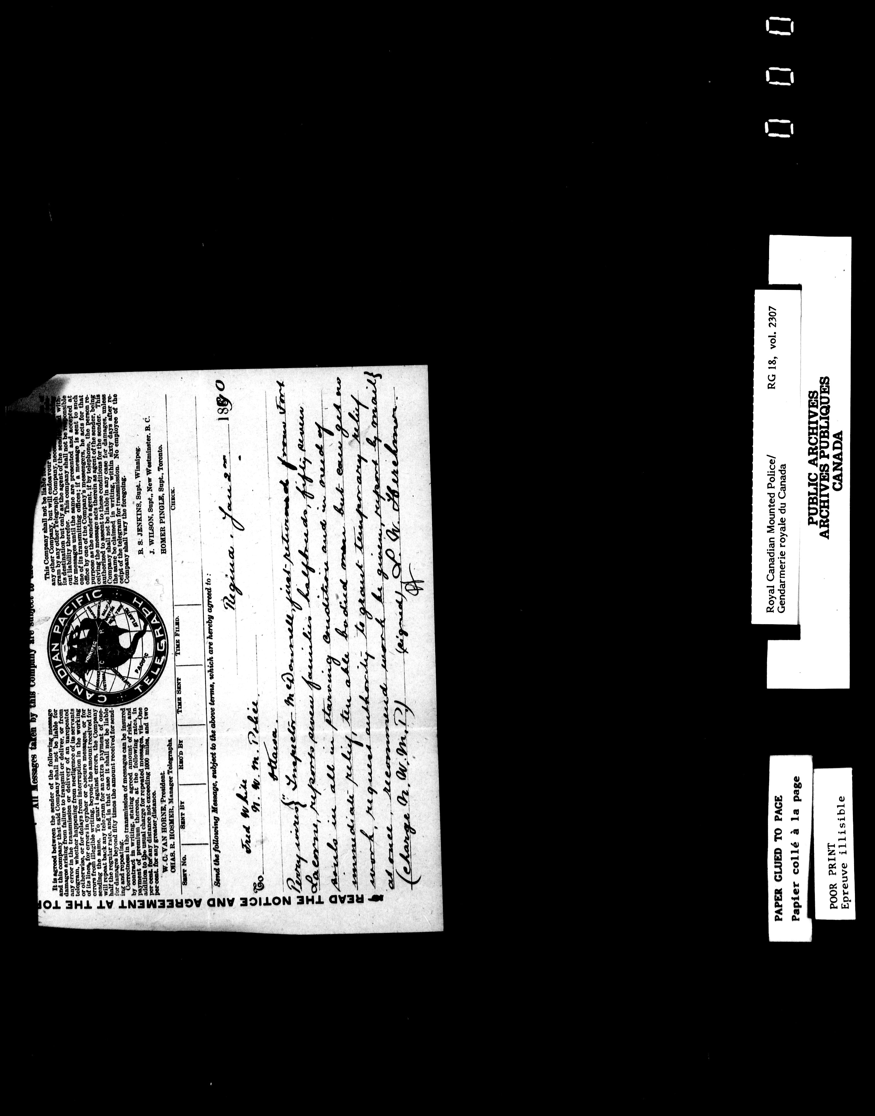 Northwest Mounted Police : Telegrams of the Commissioner's Office, 1882-1919 - 6967
