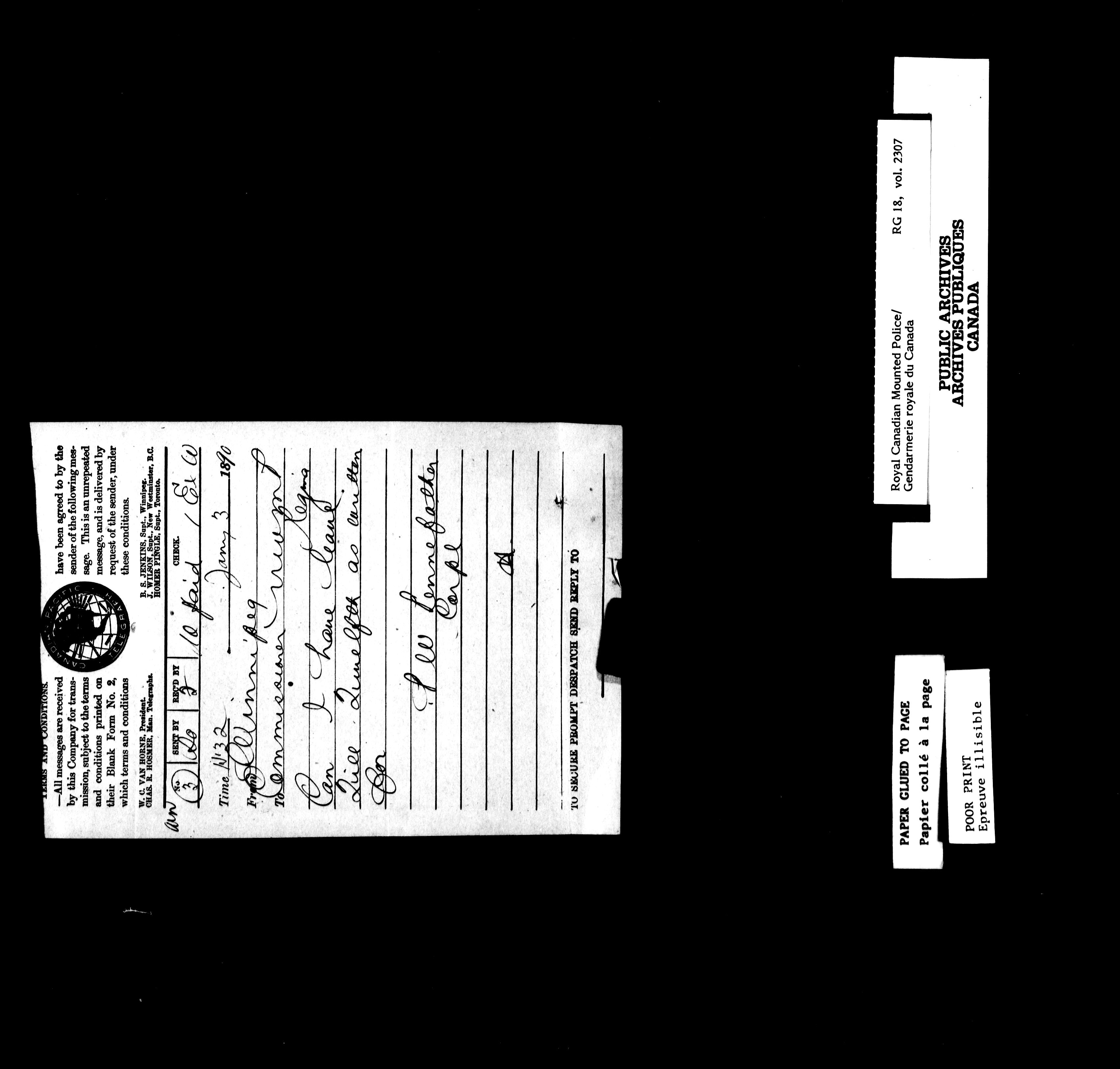 Northwest Mounted Police : Telegrams of the Commissioner's Office, 1882-1919 - 6967