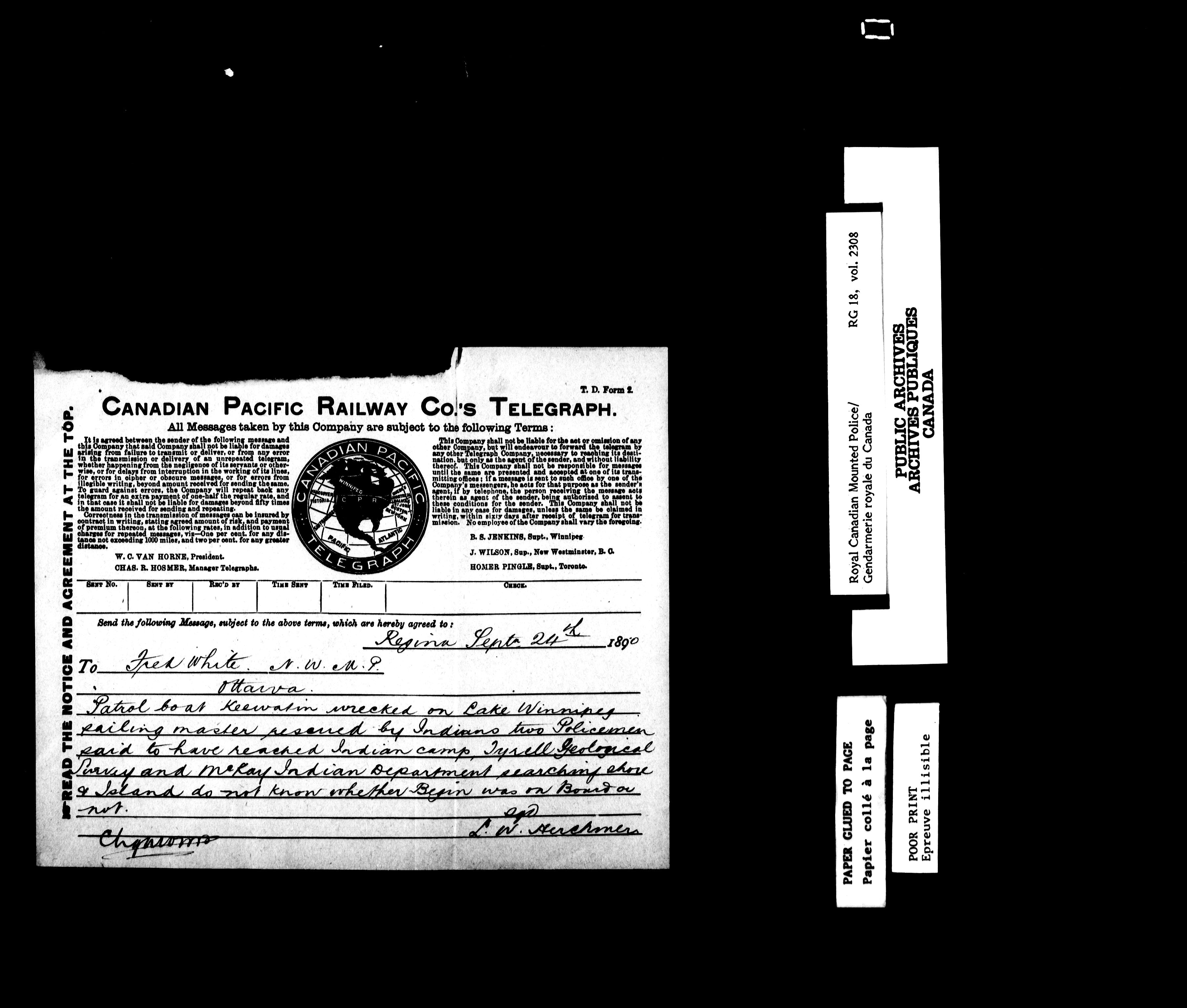 Northwest Mounted Police : Telegrams of the Commissioner's Office, 1882-1919 - 6968