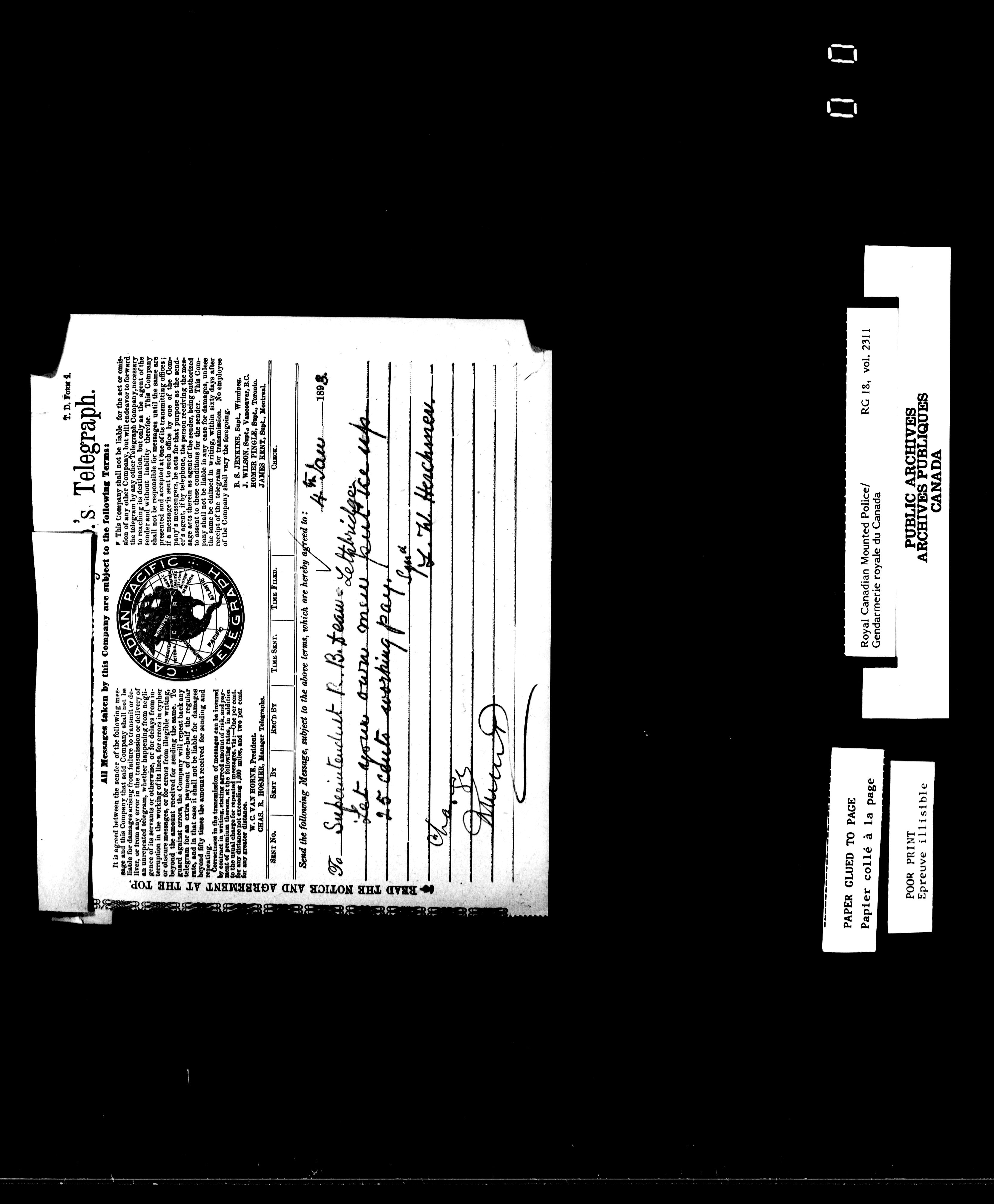 Northwest Mounted Police : Telegrams of the Commissioner's Office, 1882-1919 - 6970