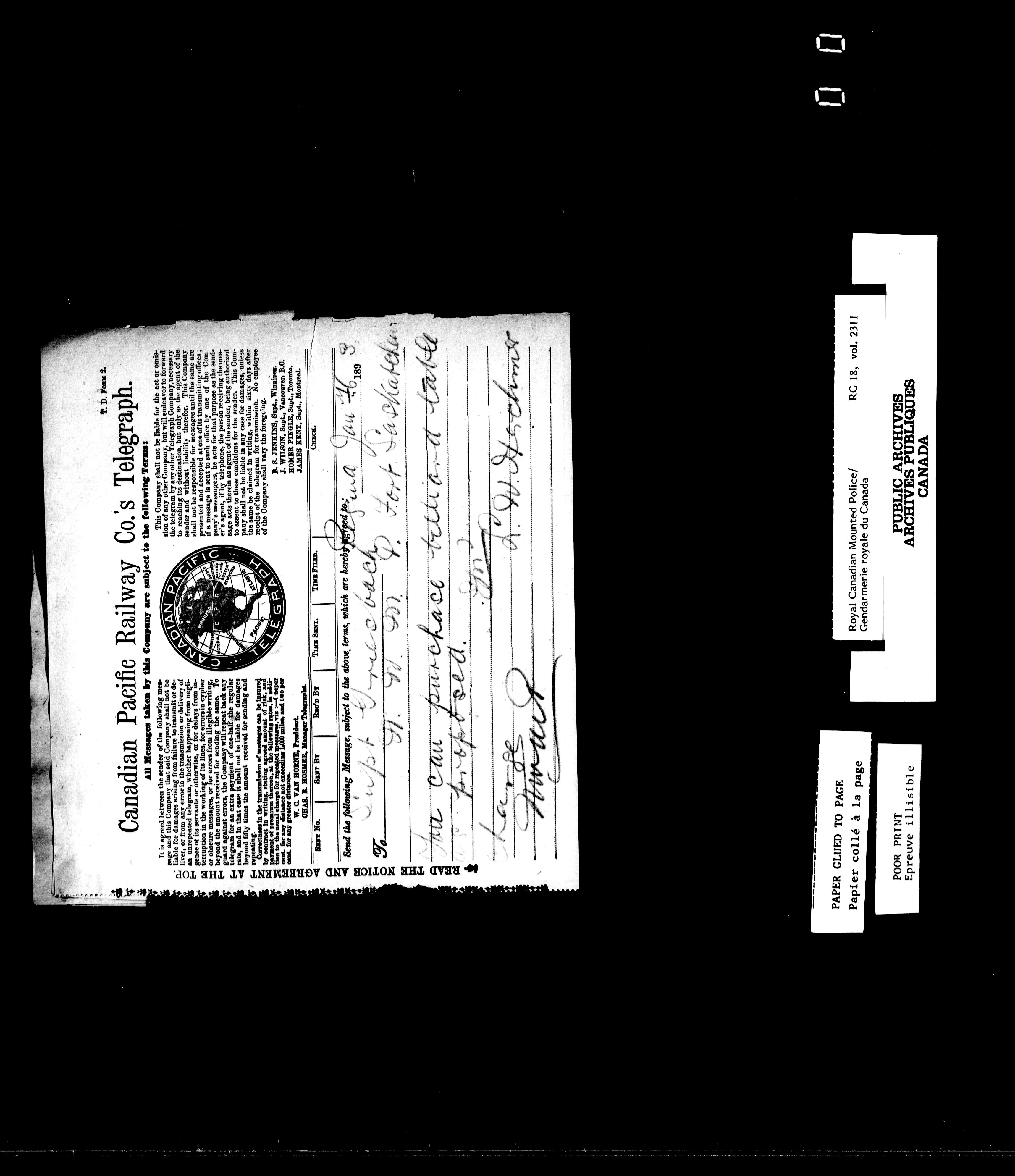Northwest Mounted Police : Telegrams of the Commissioner's Office, 1882-1919 - 6970