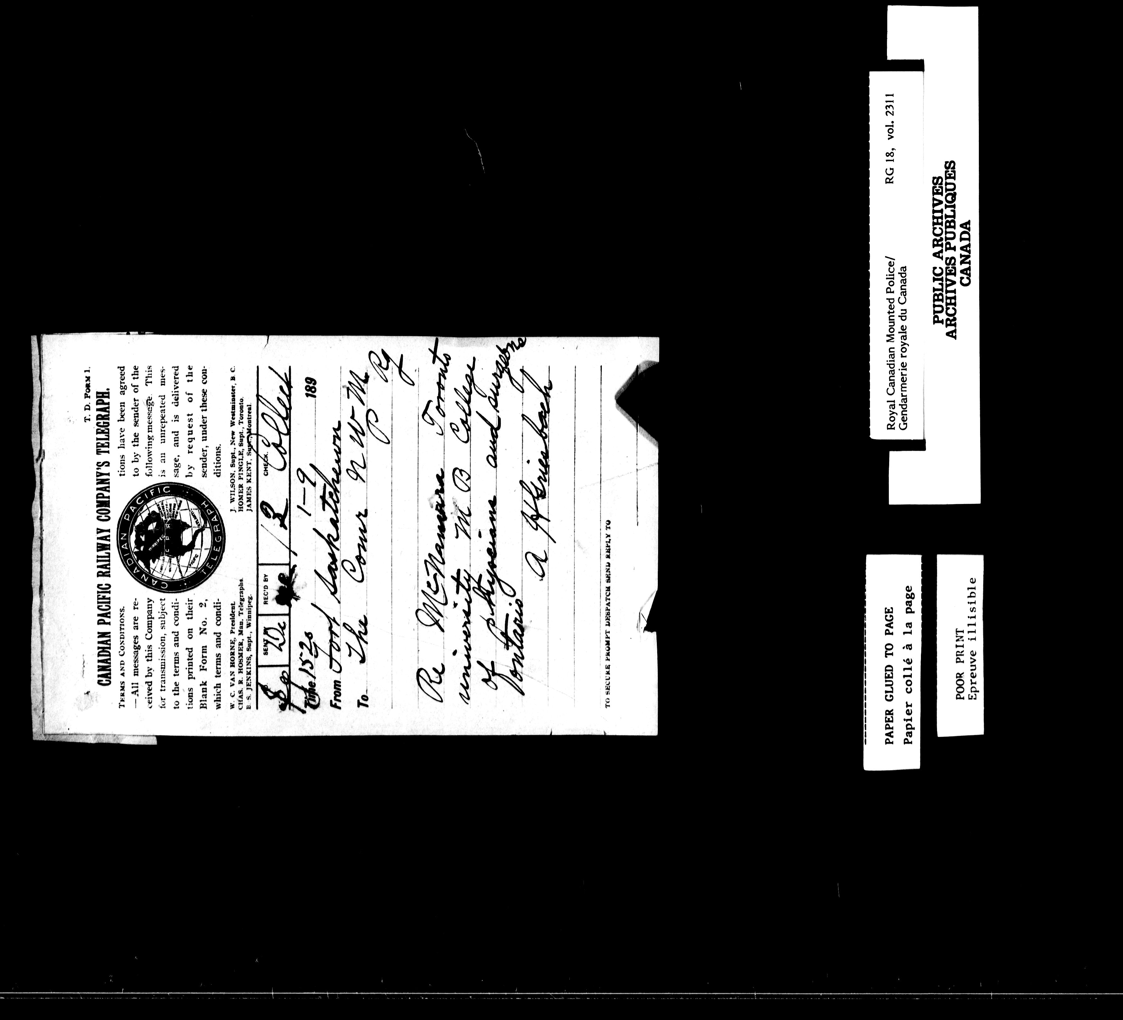 Northwest Mounted Police : Telegrams of the Commissioner's Office, 1882-1919 - 6970