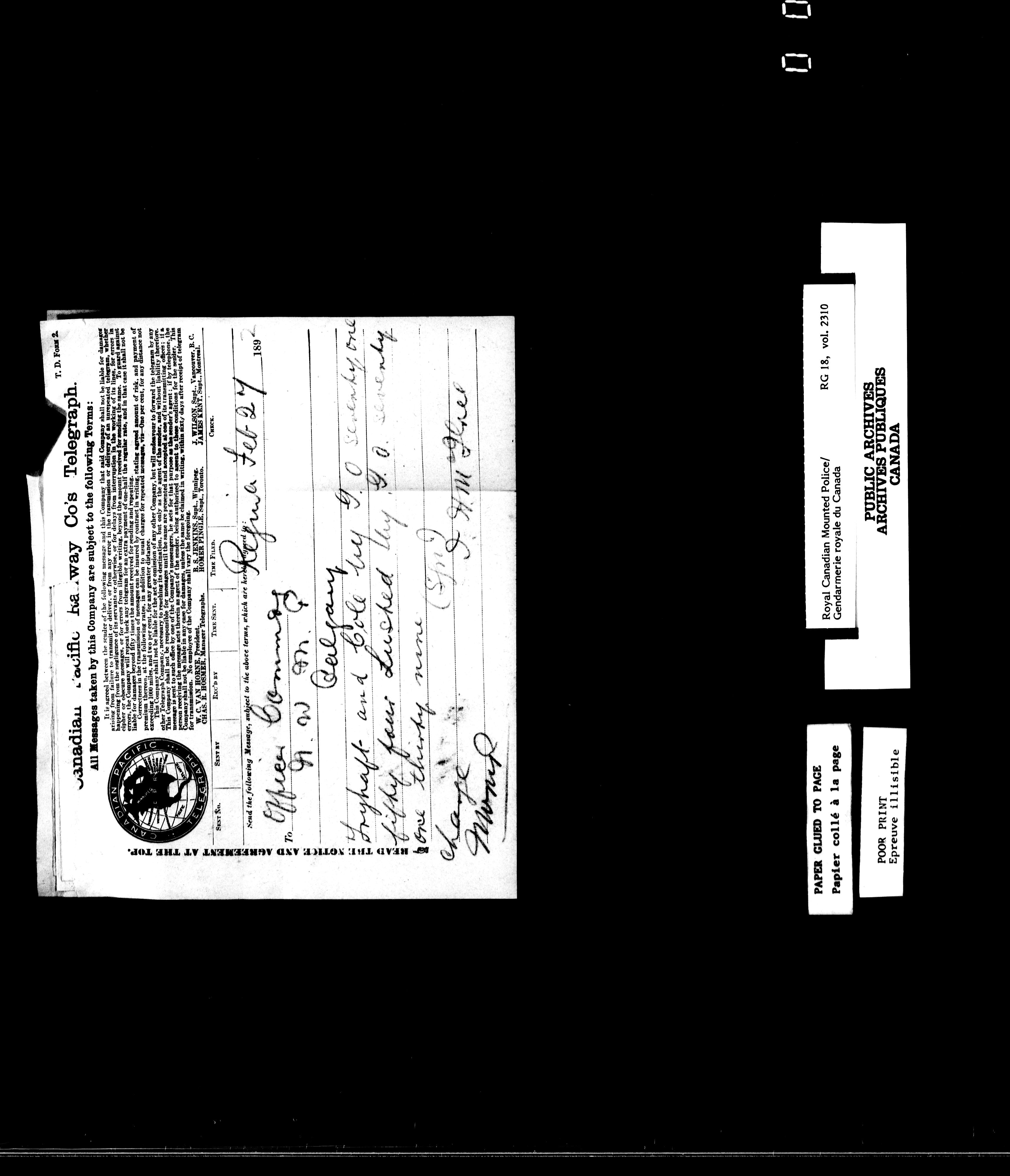 Northwest Mounted Police : Telegrams of the Commissioner's Office, 1882-1919 - 6970