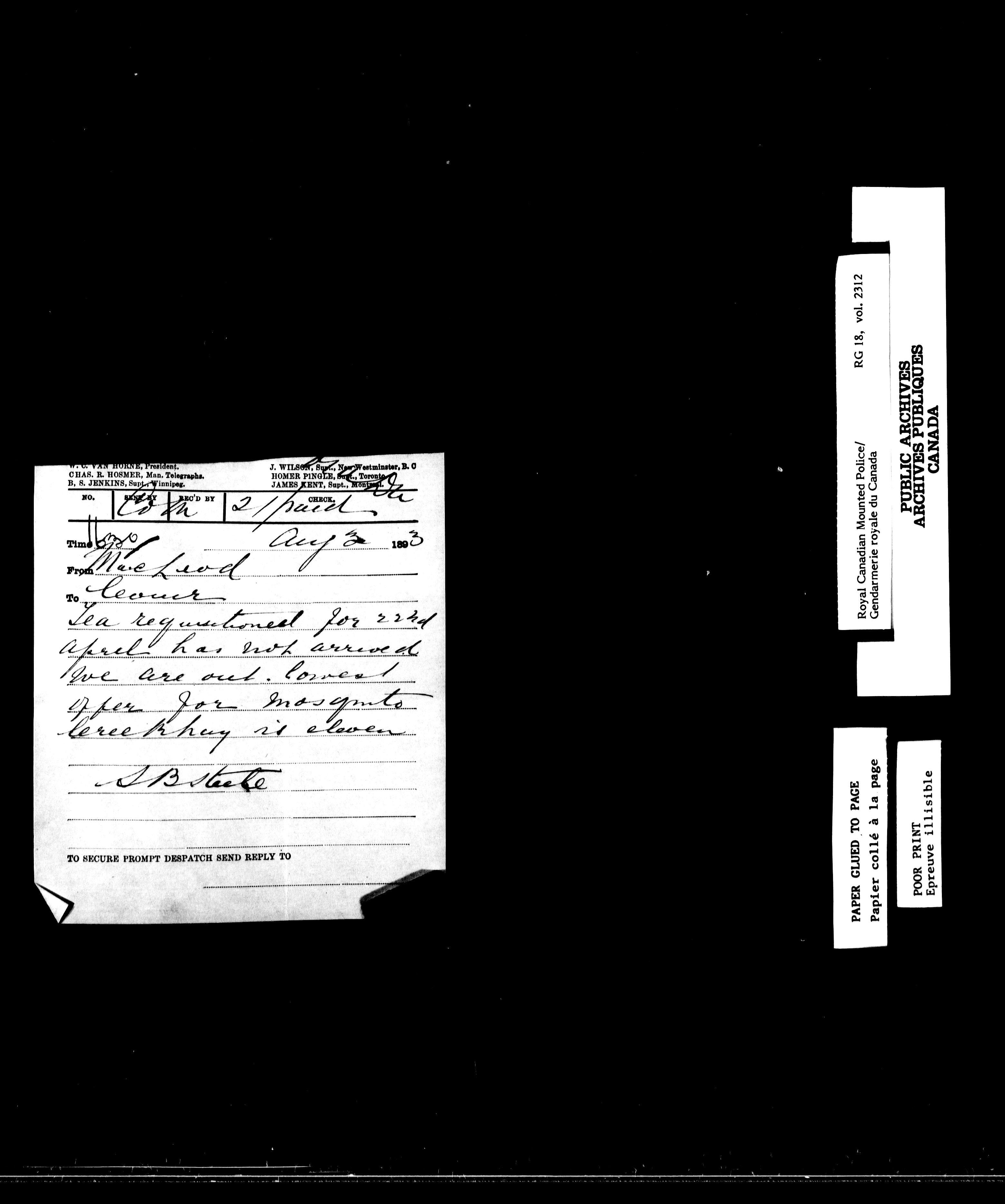 Northwest Mounted Police : Telegrams of the Commissioner's Office, 1882-1919 - 6971