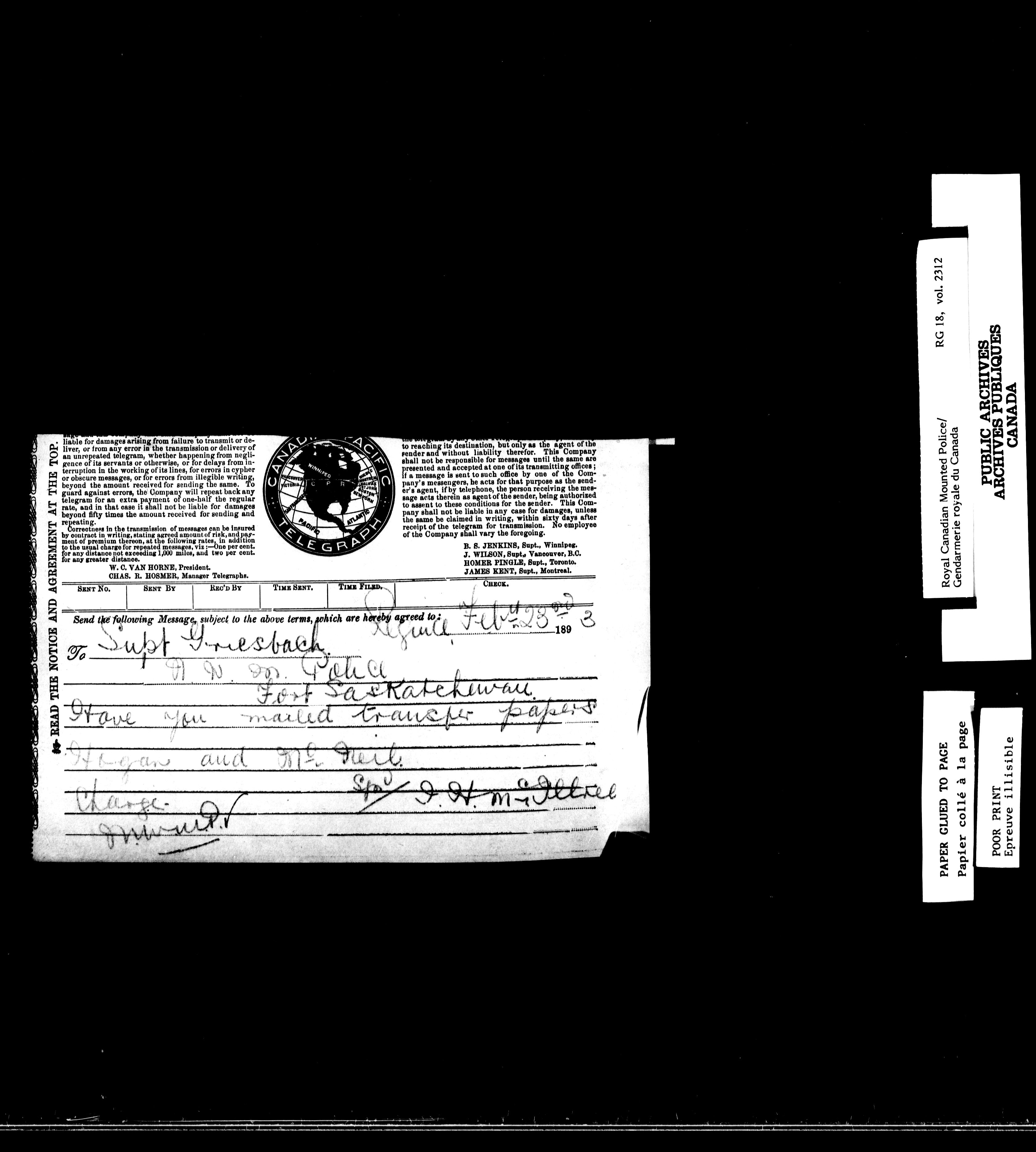 Northwest Mounted Police : Telegrams of the Commissioner's Office, 1882-1919 - 6971