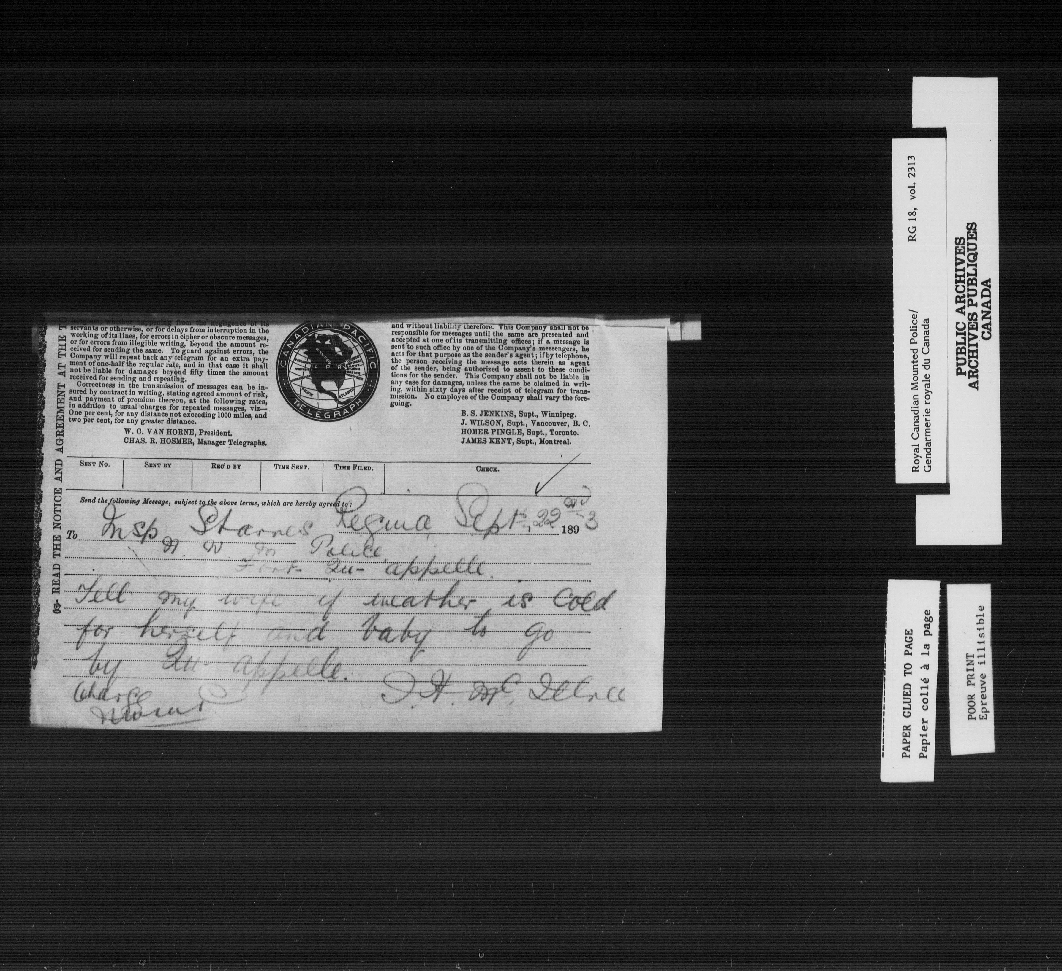 Northwest Mounted Police : Telegrams of the Commissioner's Office, 1882-1919 - 6972