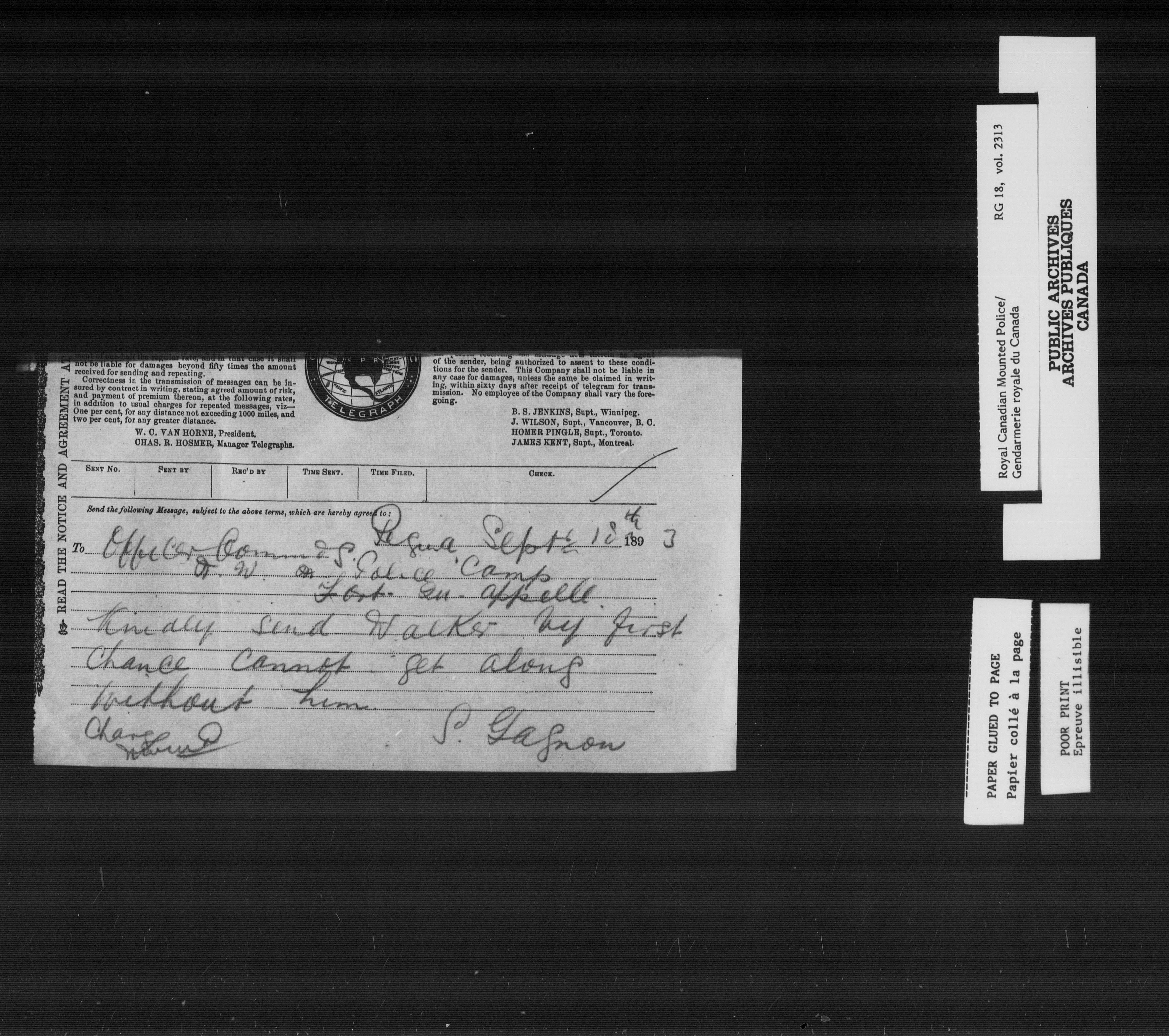 Northwest Mounted Police : Telegrams of the Commissioner's Office, 1882-1919 - 6972