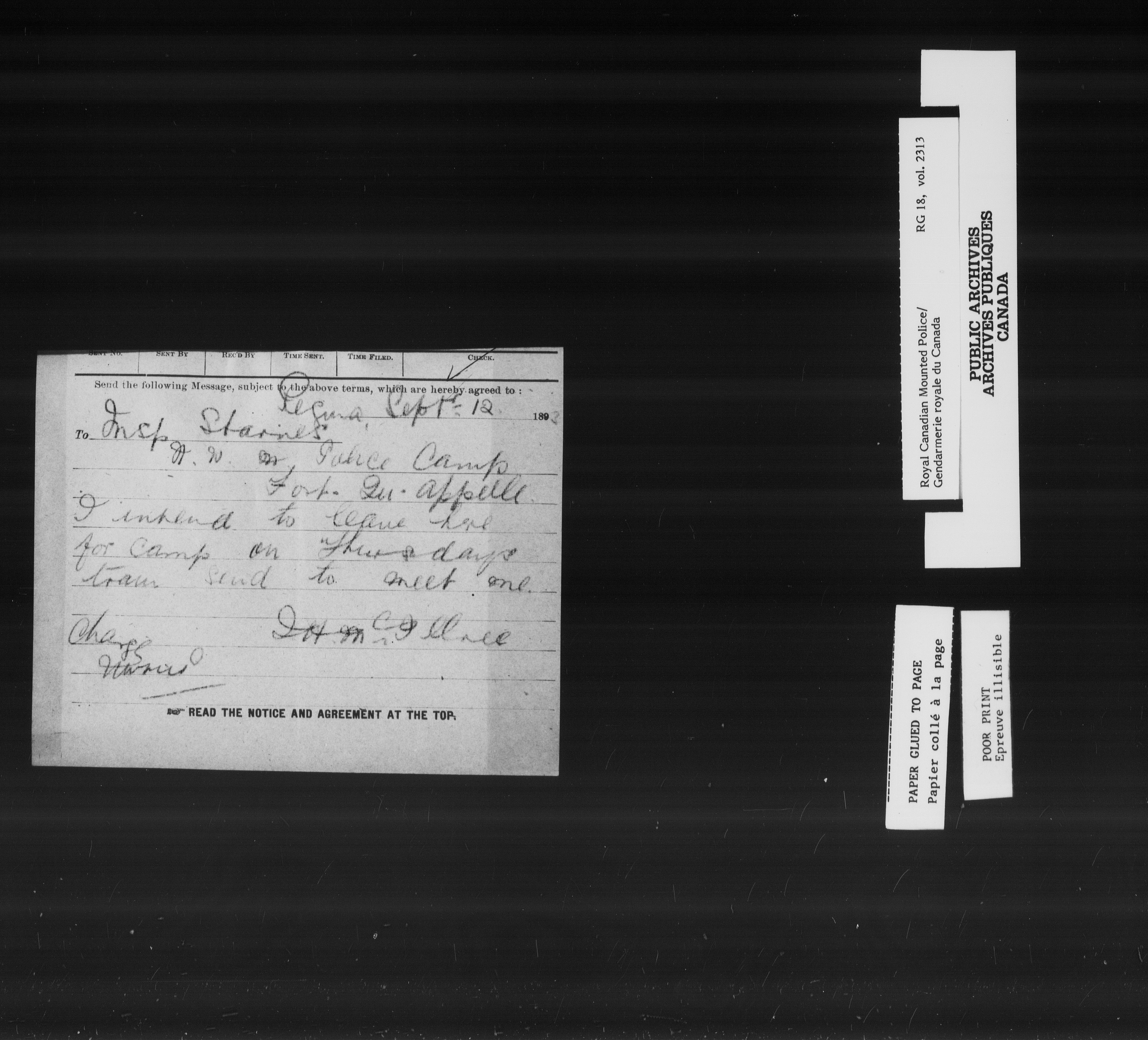 Northwest Mounted Police : Telegrams of the Commissioner's Office, 1882-1919 - 6972