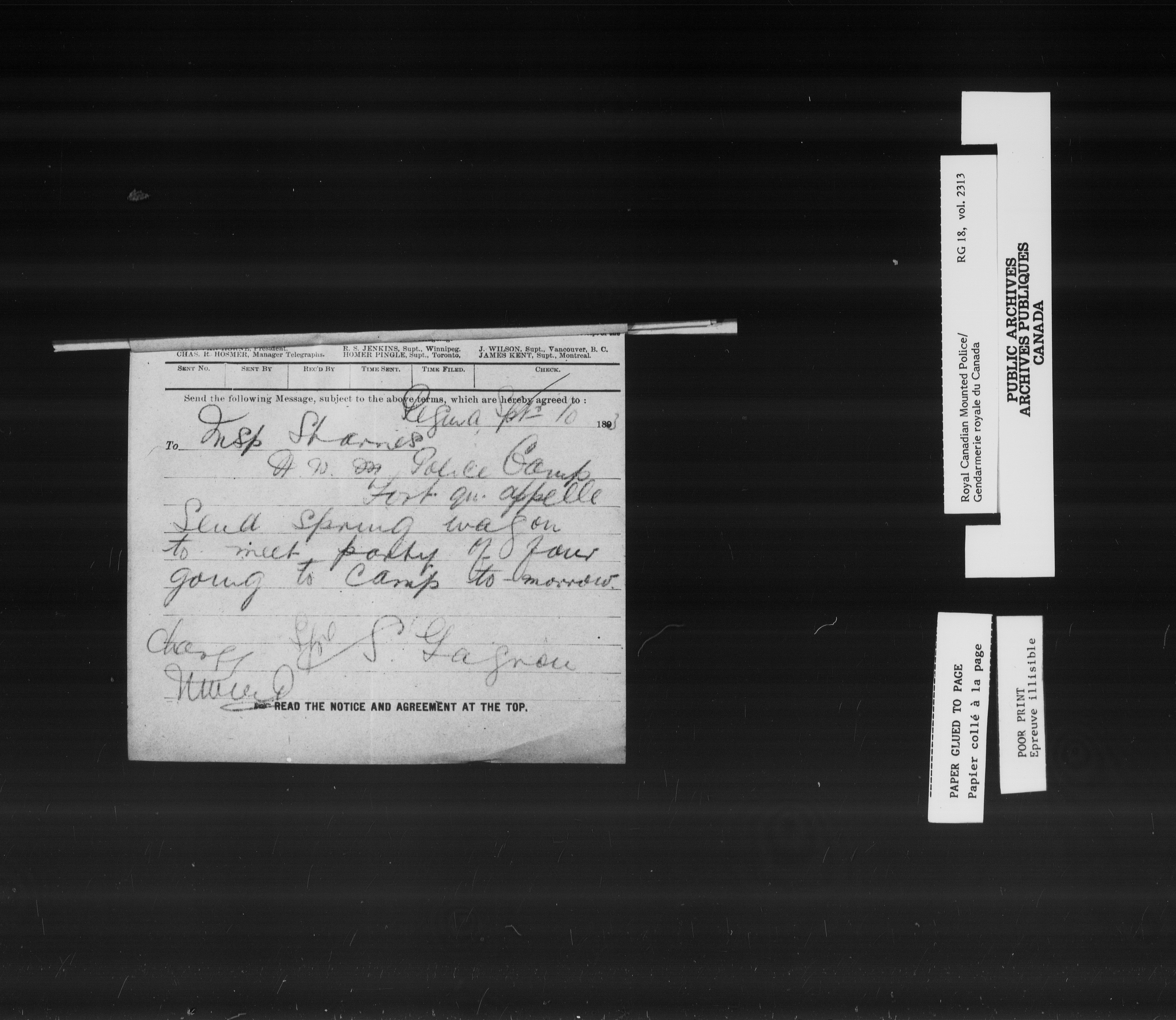 Northwest Mounted Police : Telegrams of the Commissioner's Office, 1882-1919 - 6972