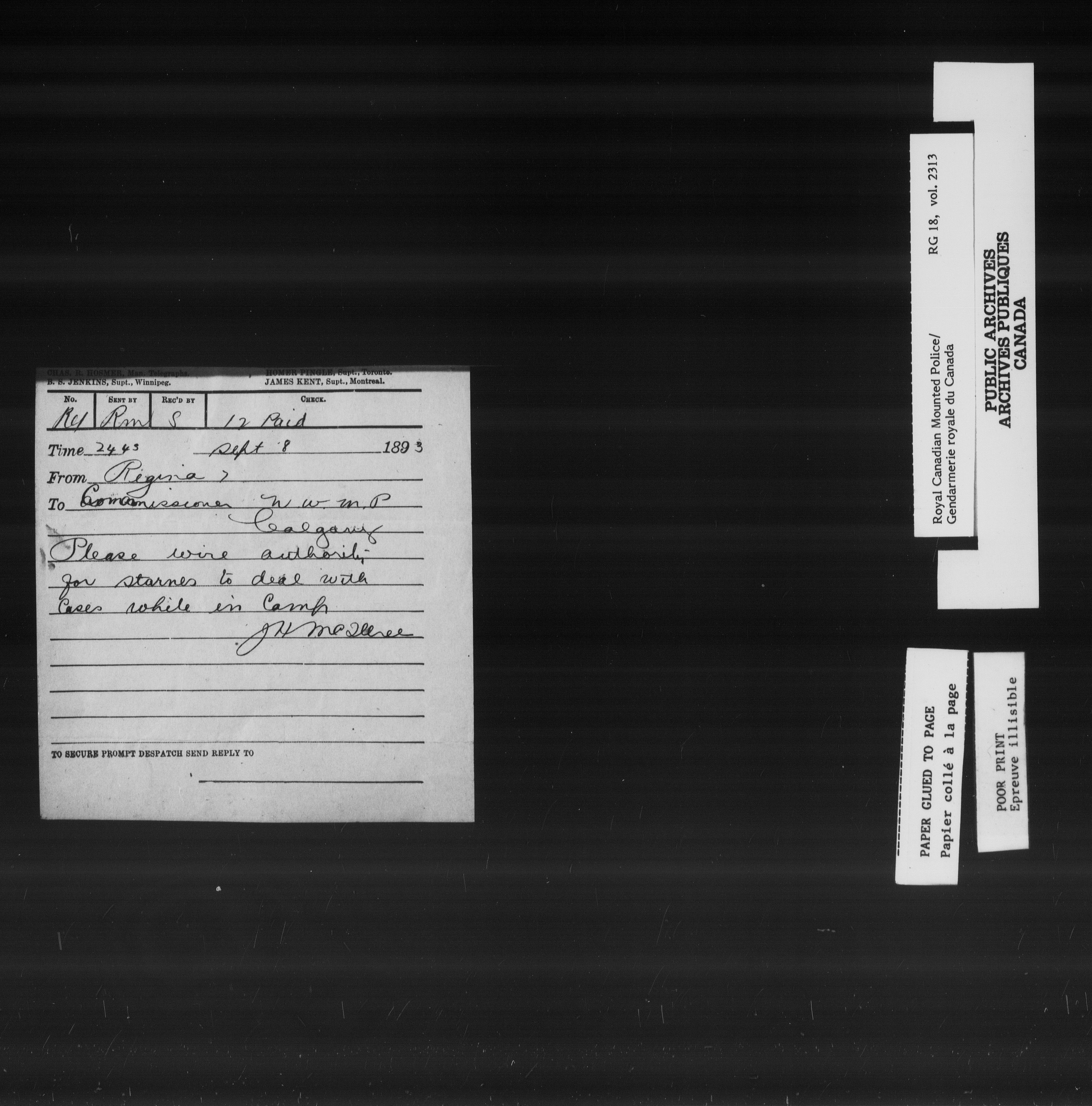 Northwest Mounted Police : Telegrams of the Commissioner's Office, 1882-1919 - 6972