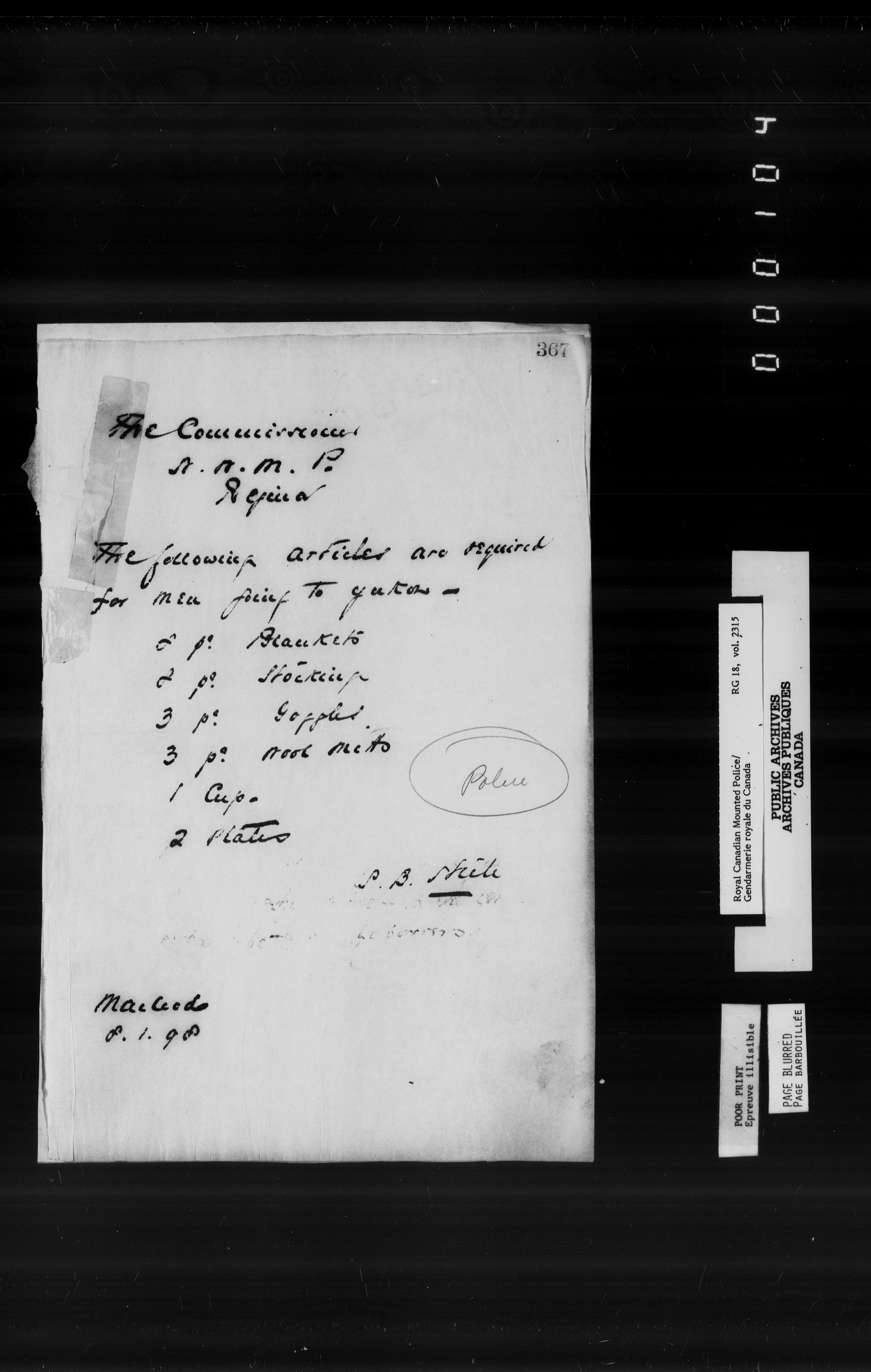 Northwest Mounted Police : Telegrams of the Commissioner's Office, 1882-1919 - 6973