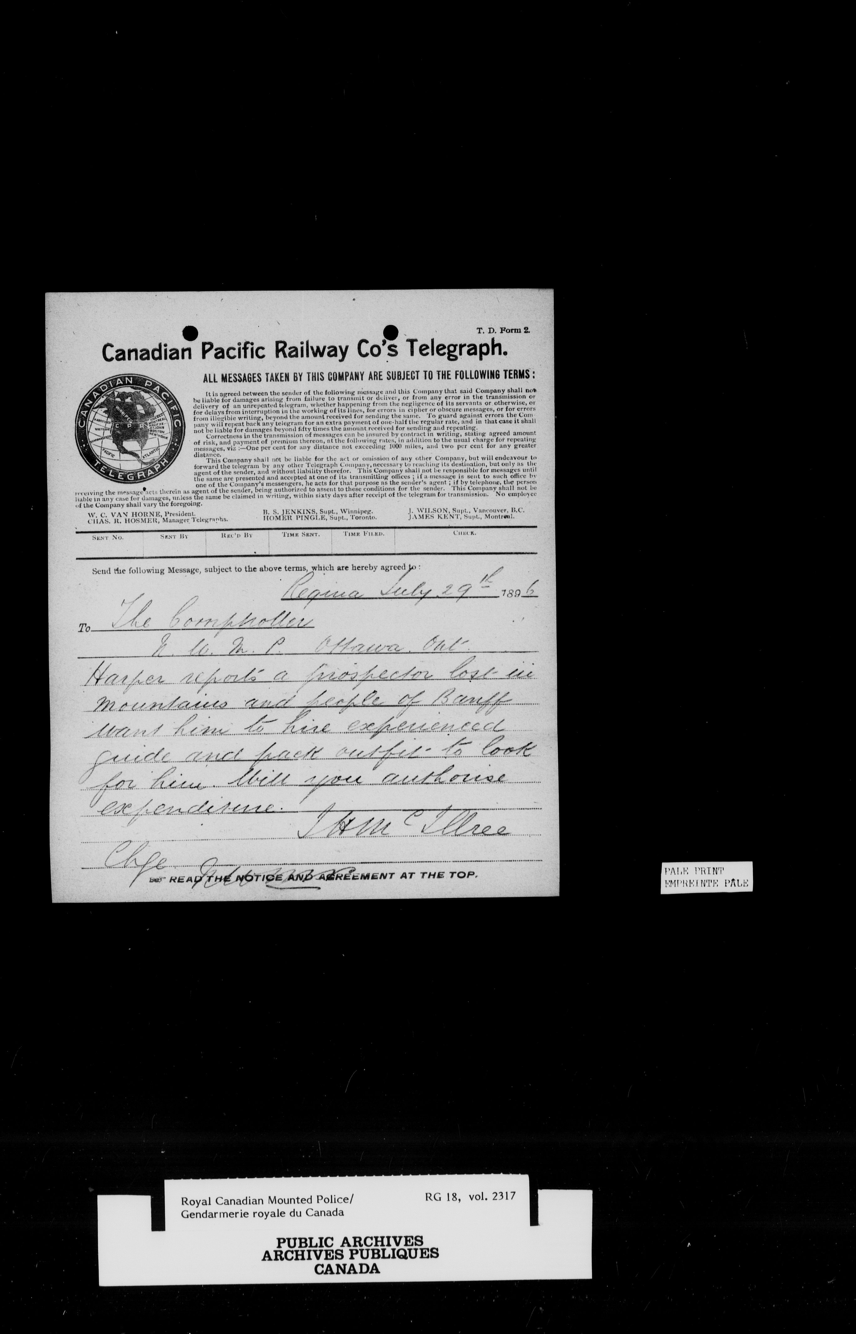 Northwest Mounted Police : Telegrams of the Commissioner's Office, 1882-1919 - 6974