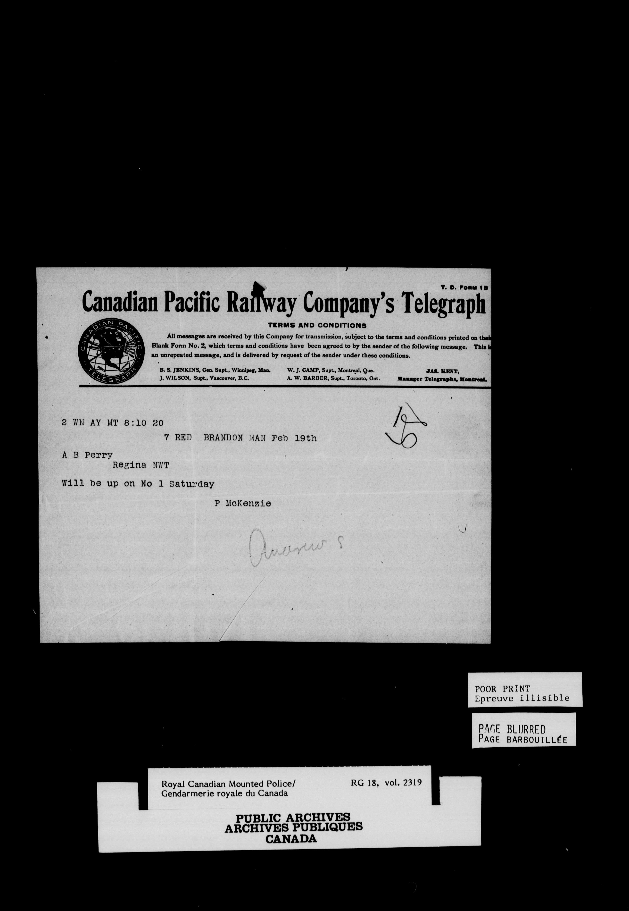Royal Canadian Mounted Police, Office of the Commissioner: letterbooks relating to sick horses : T-6976