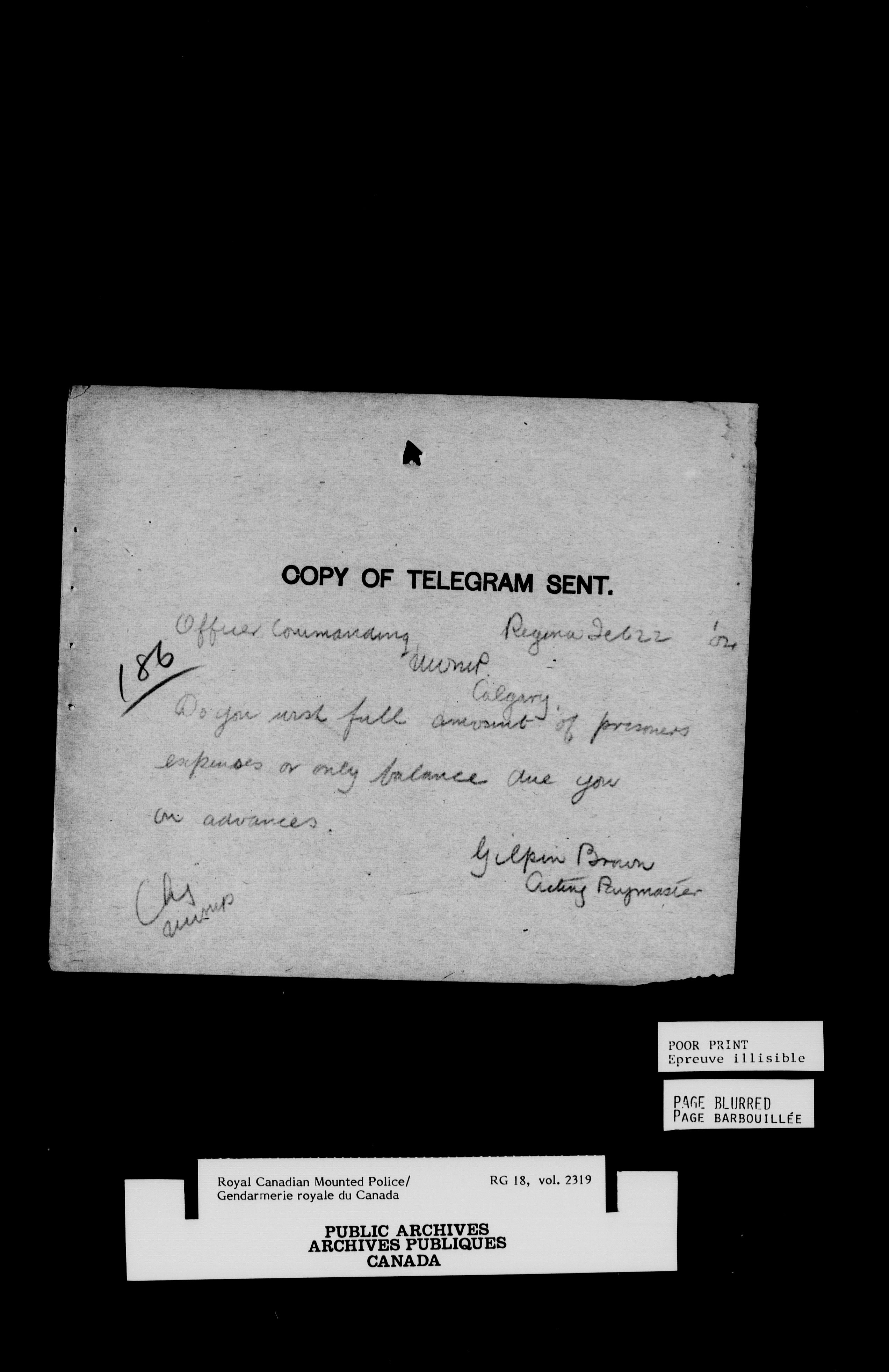 Royal Canadian Mounted Police, Office of the Commissioner: letterbooks relating to sick horses : T-6976
