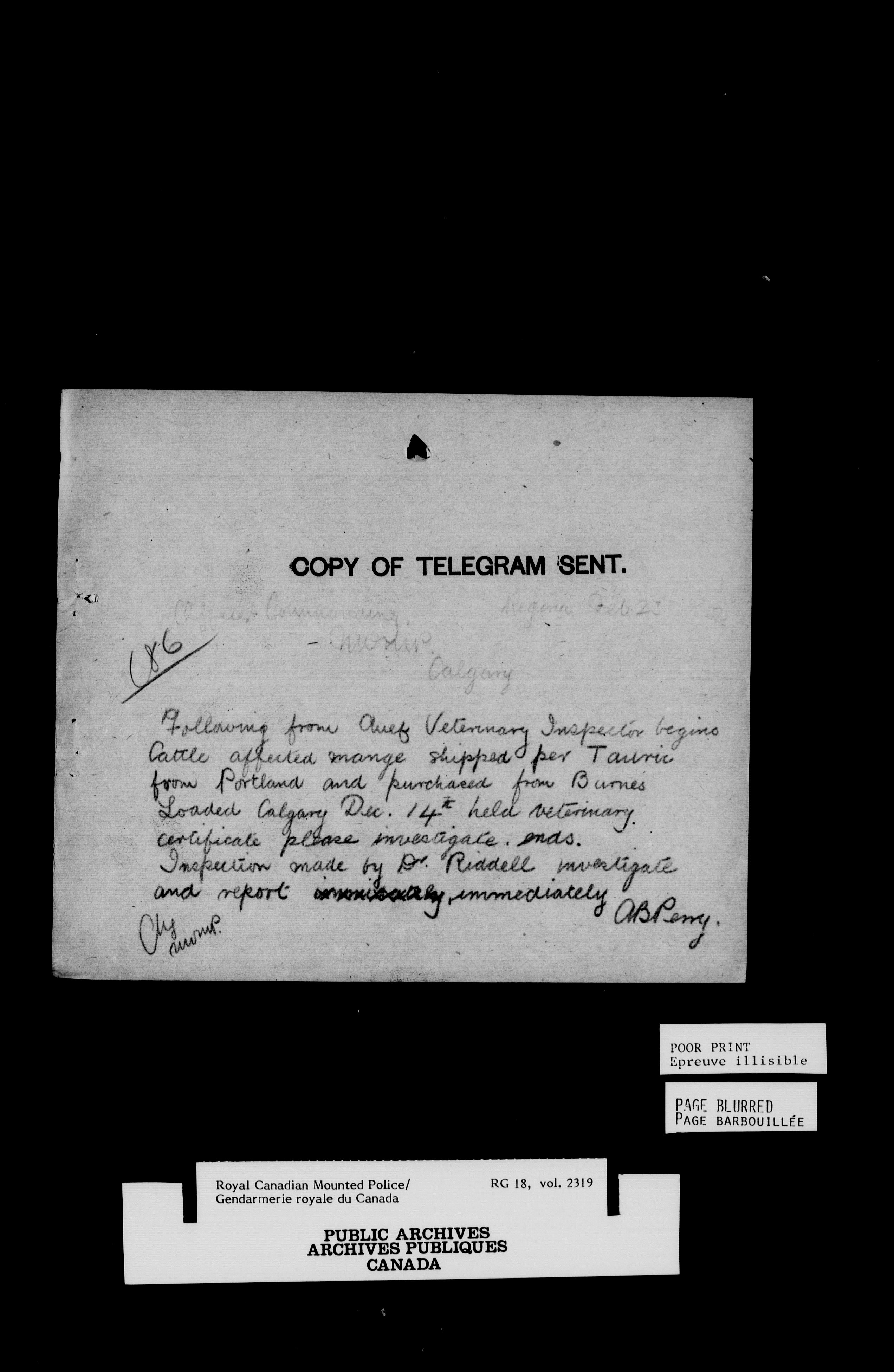 NWMP - Letterbooks relating to sick horses, 1898-1914 - 6976