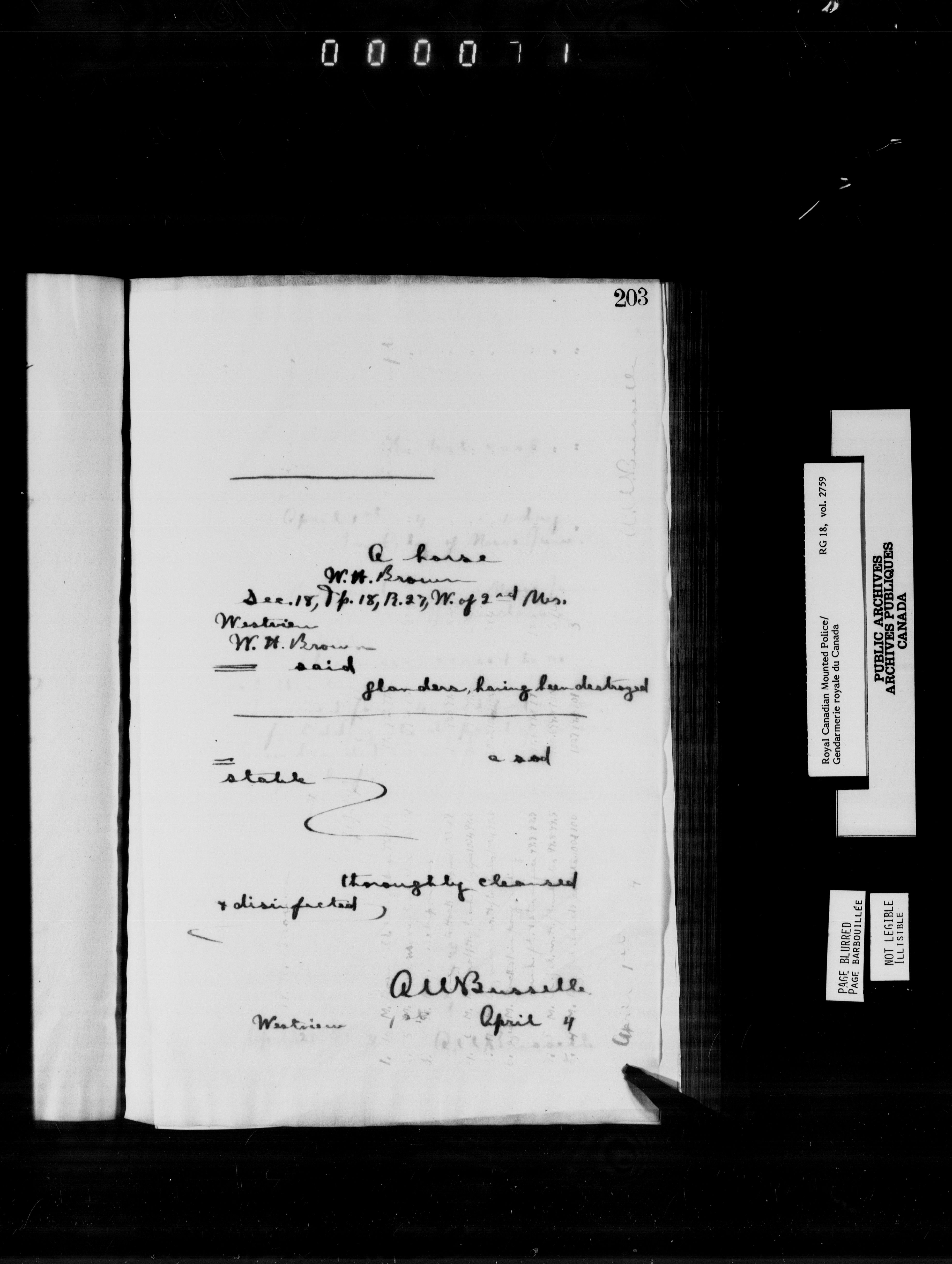 Royal Canadian Mounted Police, Office of the Commissioner: letterbooks relating to sick horses : T-6977