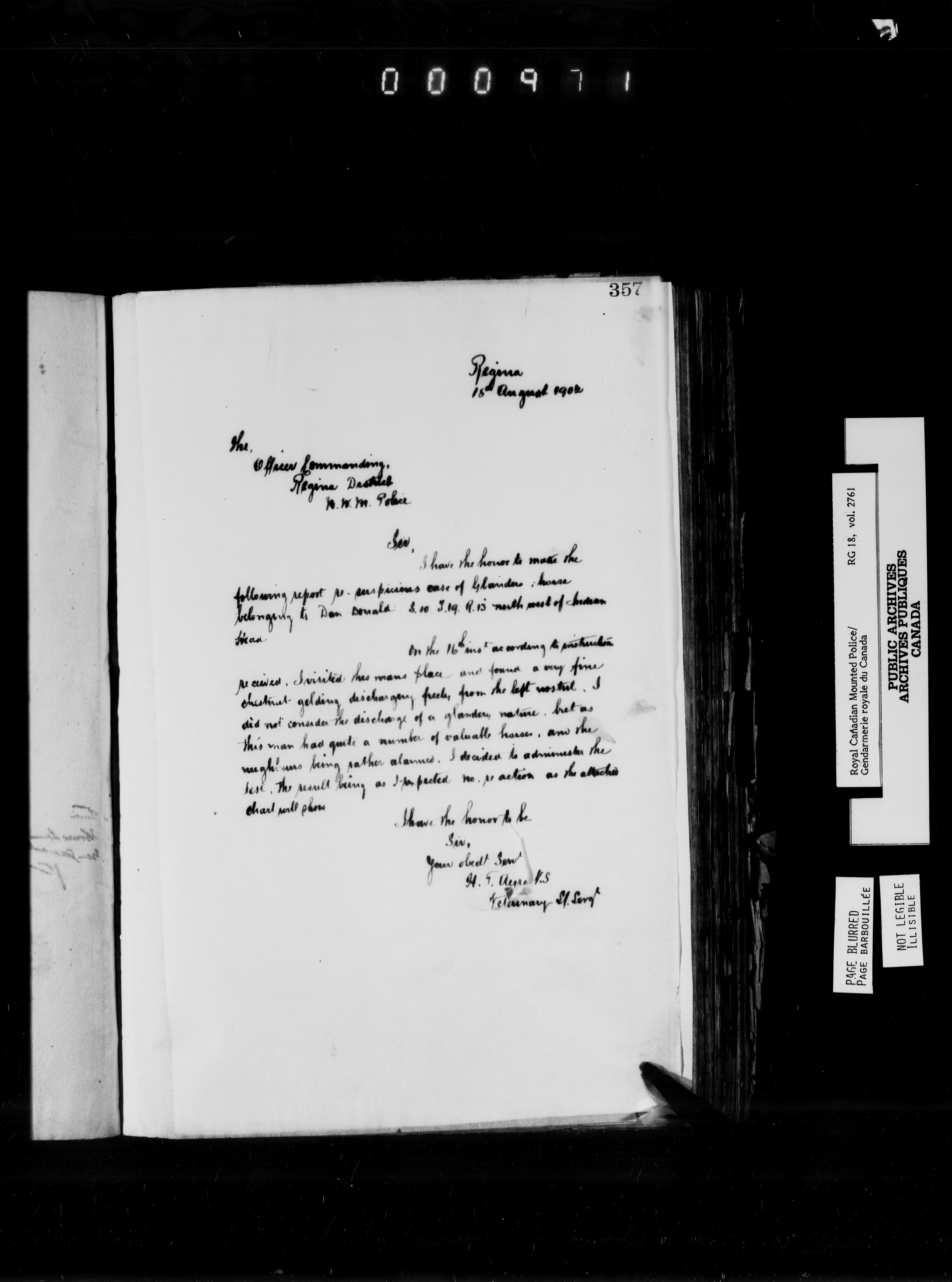 Royal Canadian Mounted Police, Office of the Commissioner: letterbooks relating to sick horses : T-6977