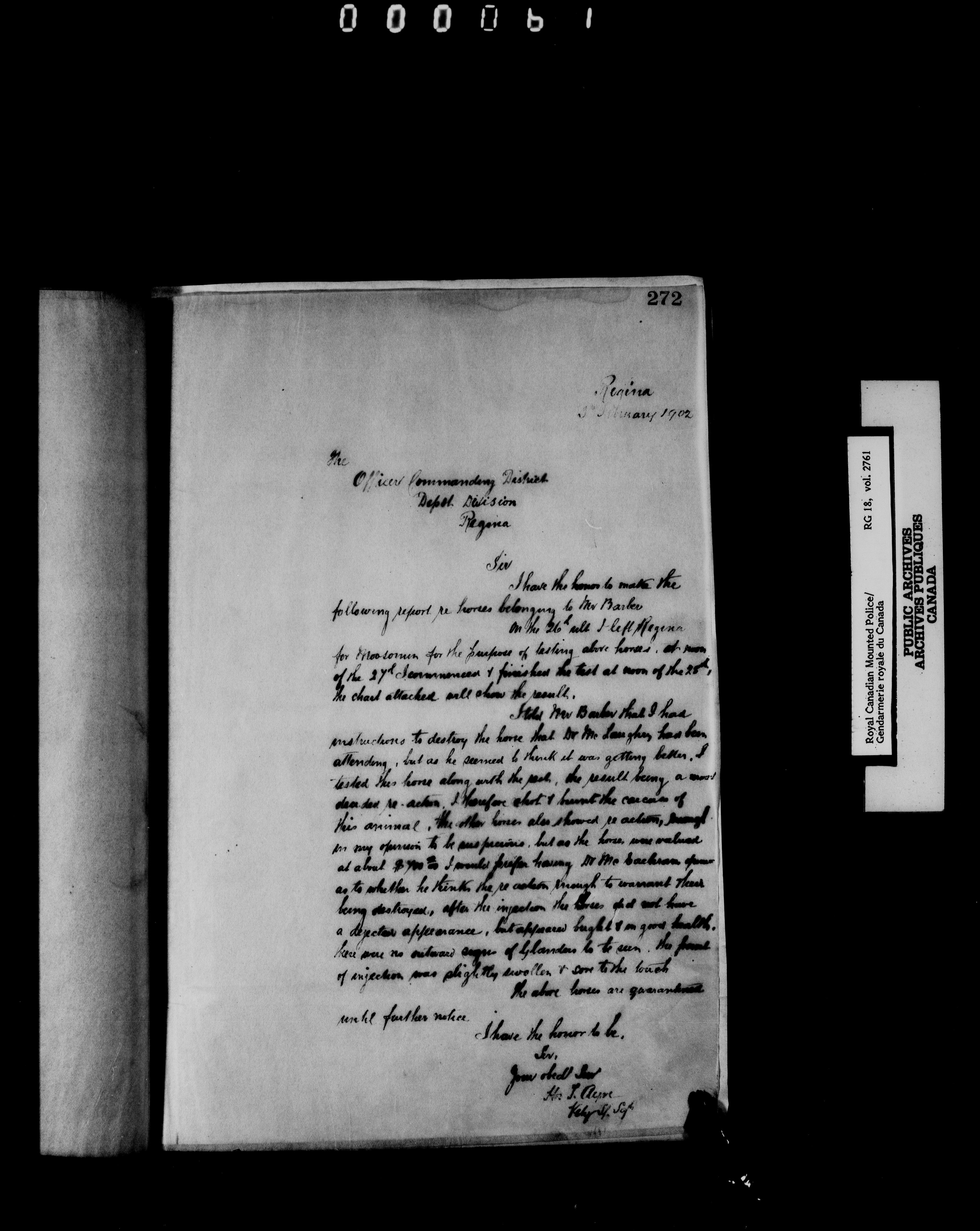 Royal Canadian Mounted Police, Office of the Commissioner: letterbooks relating to sick horses : T-6978