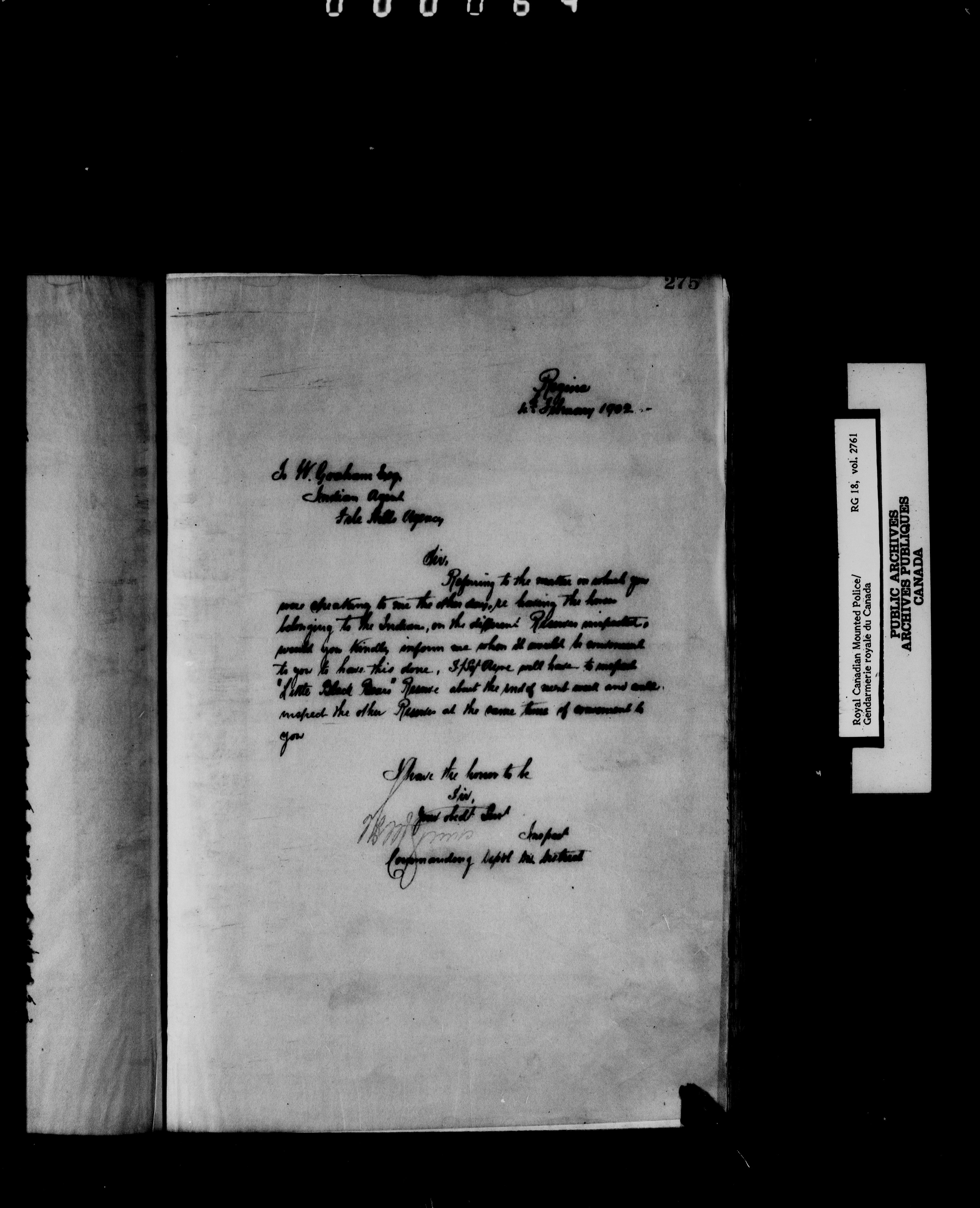 Royal Canadian Mounted Police, Office of the Commissioner: letterbooks relating to sick horses : T-6978
