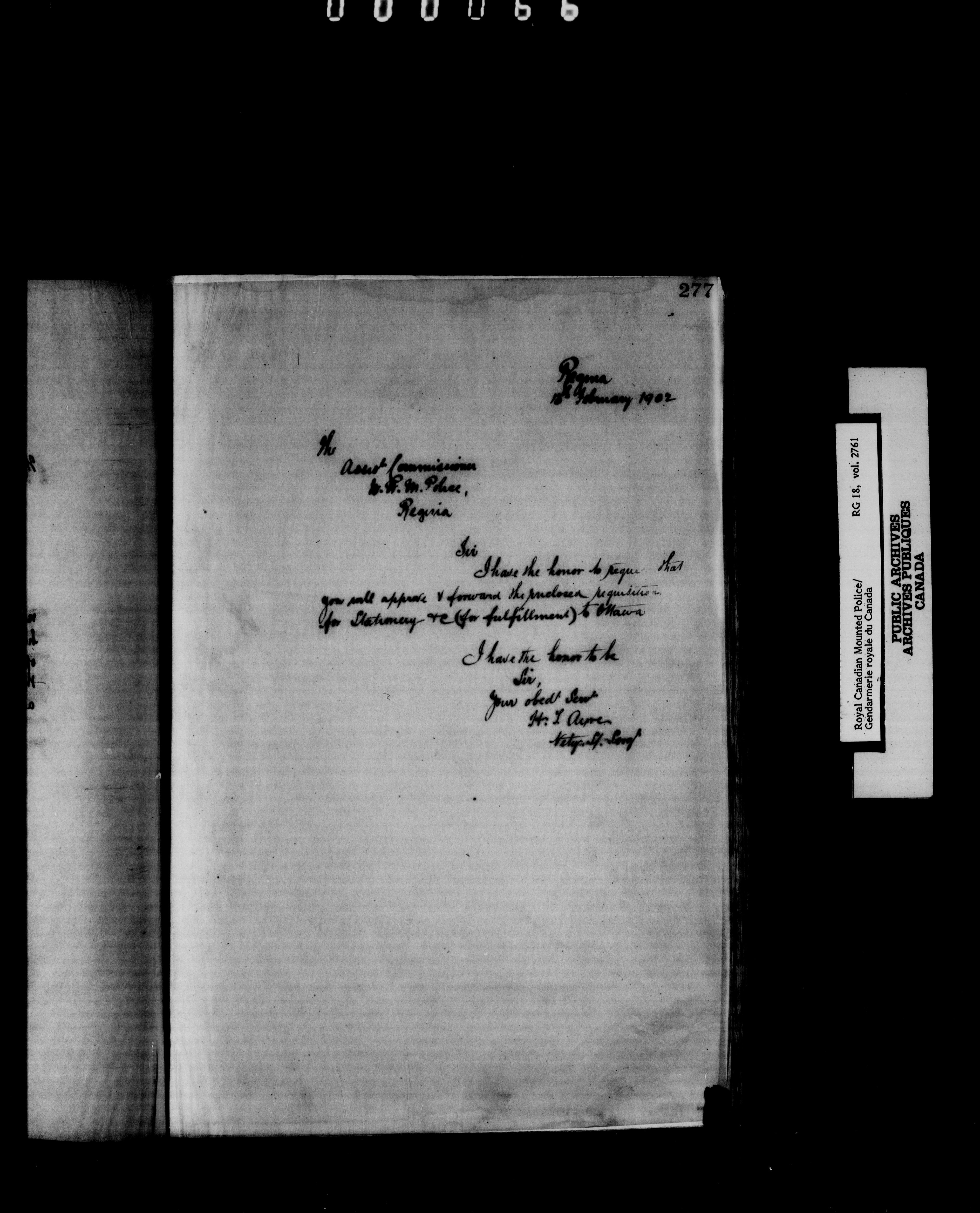 Royal Canadian Mounted Police, Office of the Commissioner: letterbooks relating to sick horses : T-6978