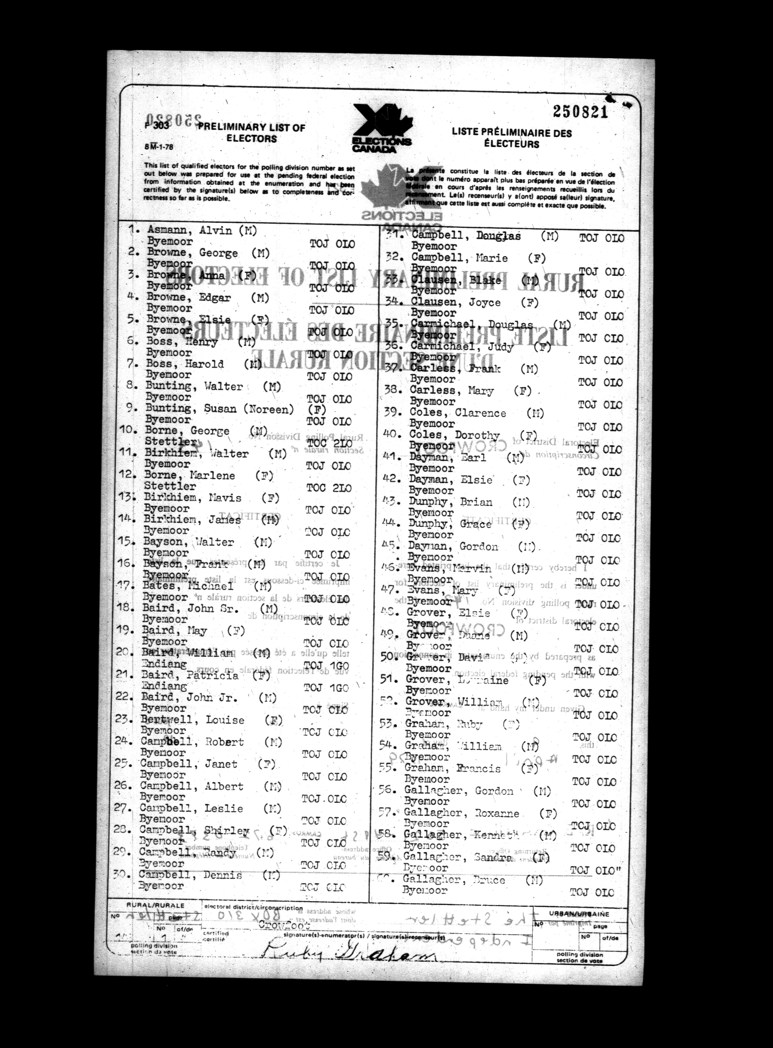 Voters' lists Alberta, 1979 - 698