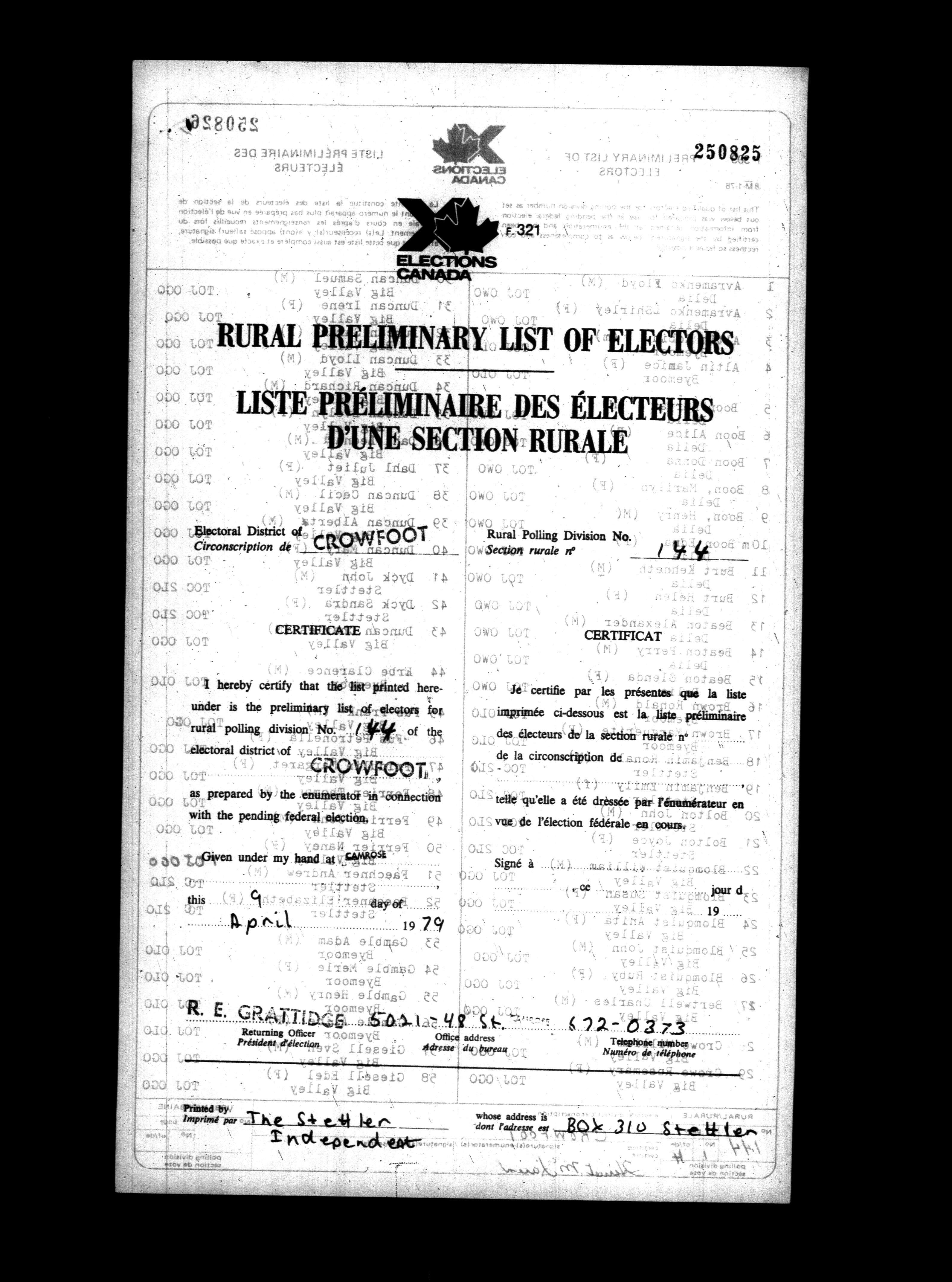 Voters' lists Alberta, 1979 - 698