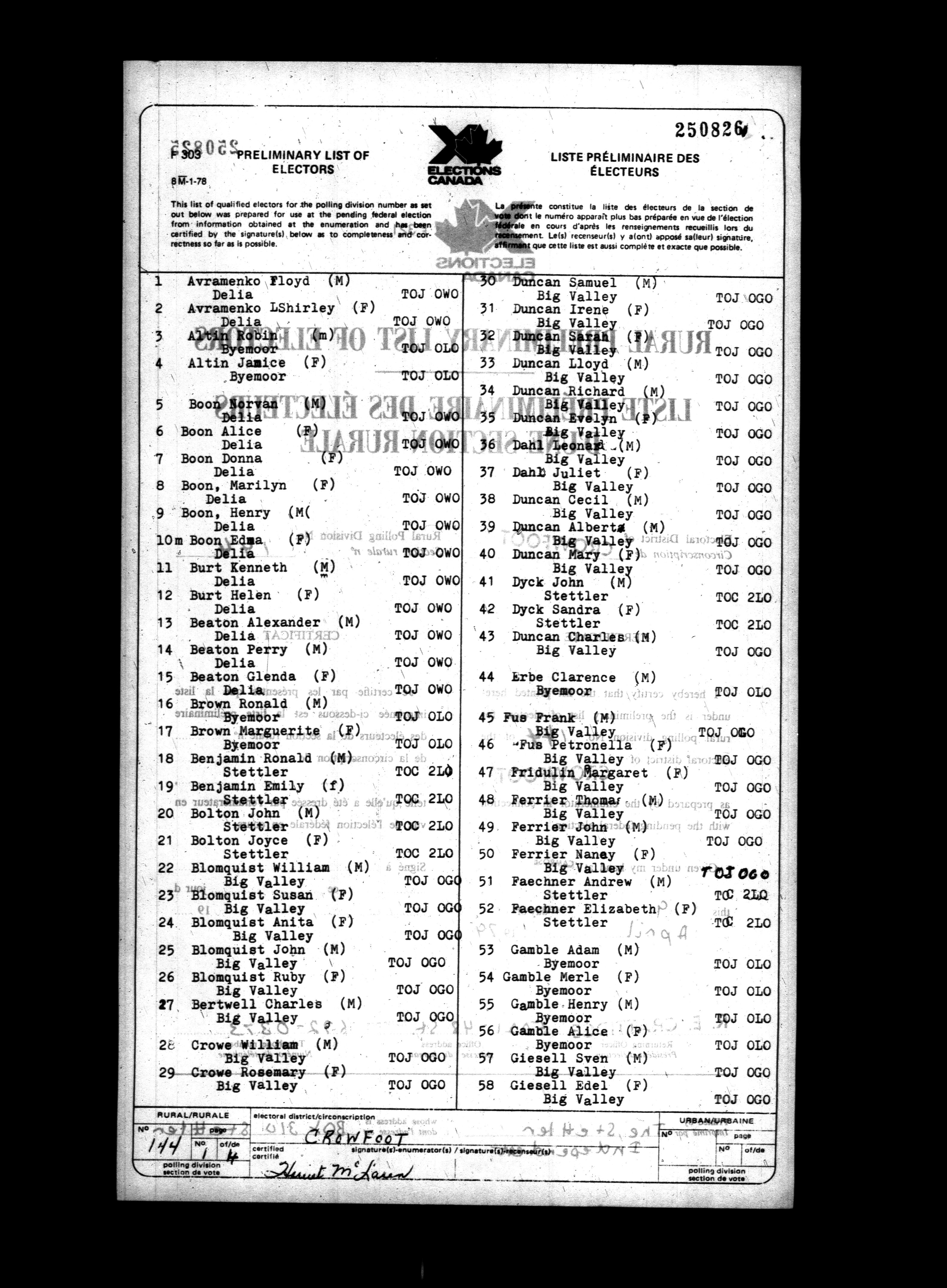 Voters' lists Alberta, 1979 - 698