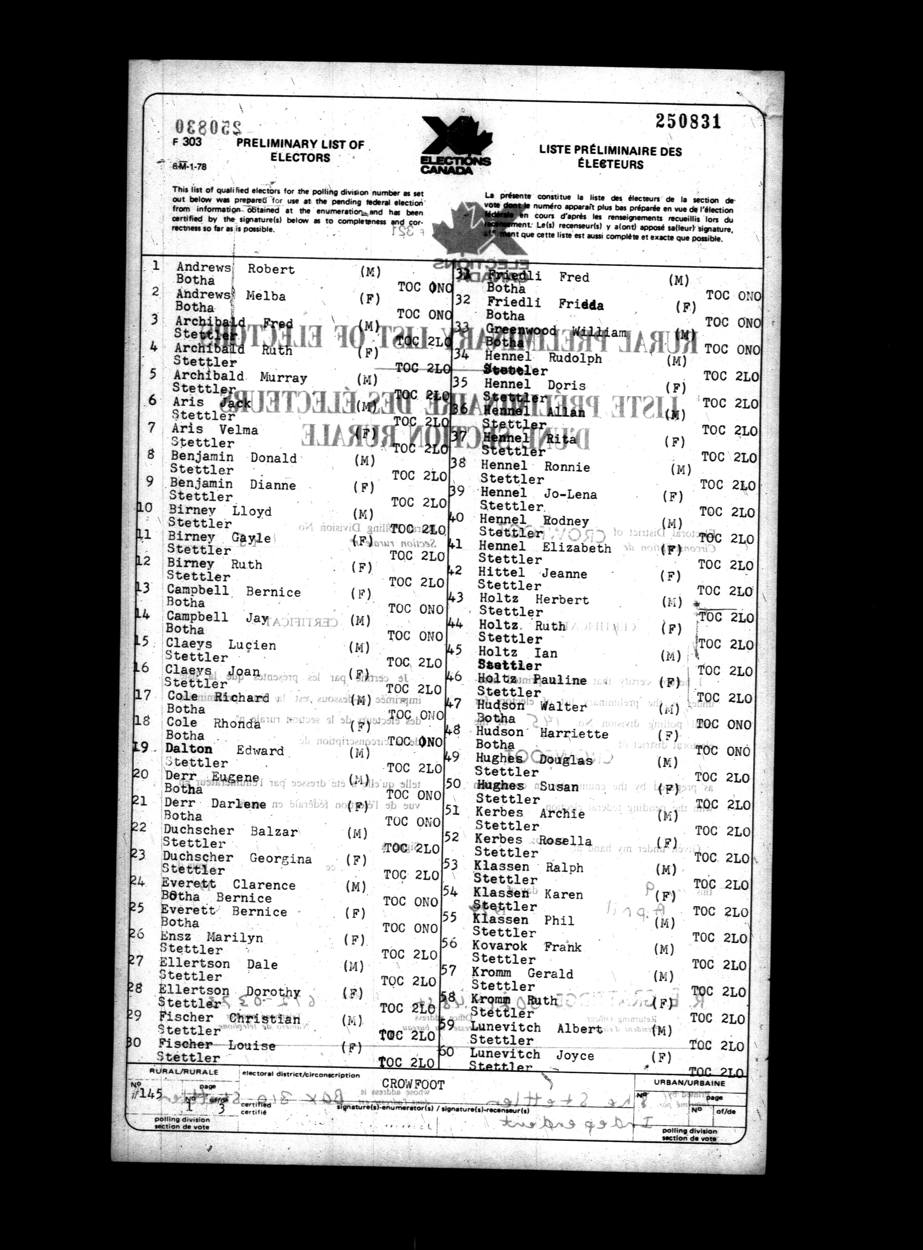 Voters' lists Alberta, 1979 - 698