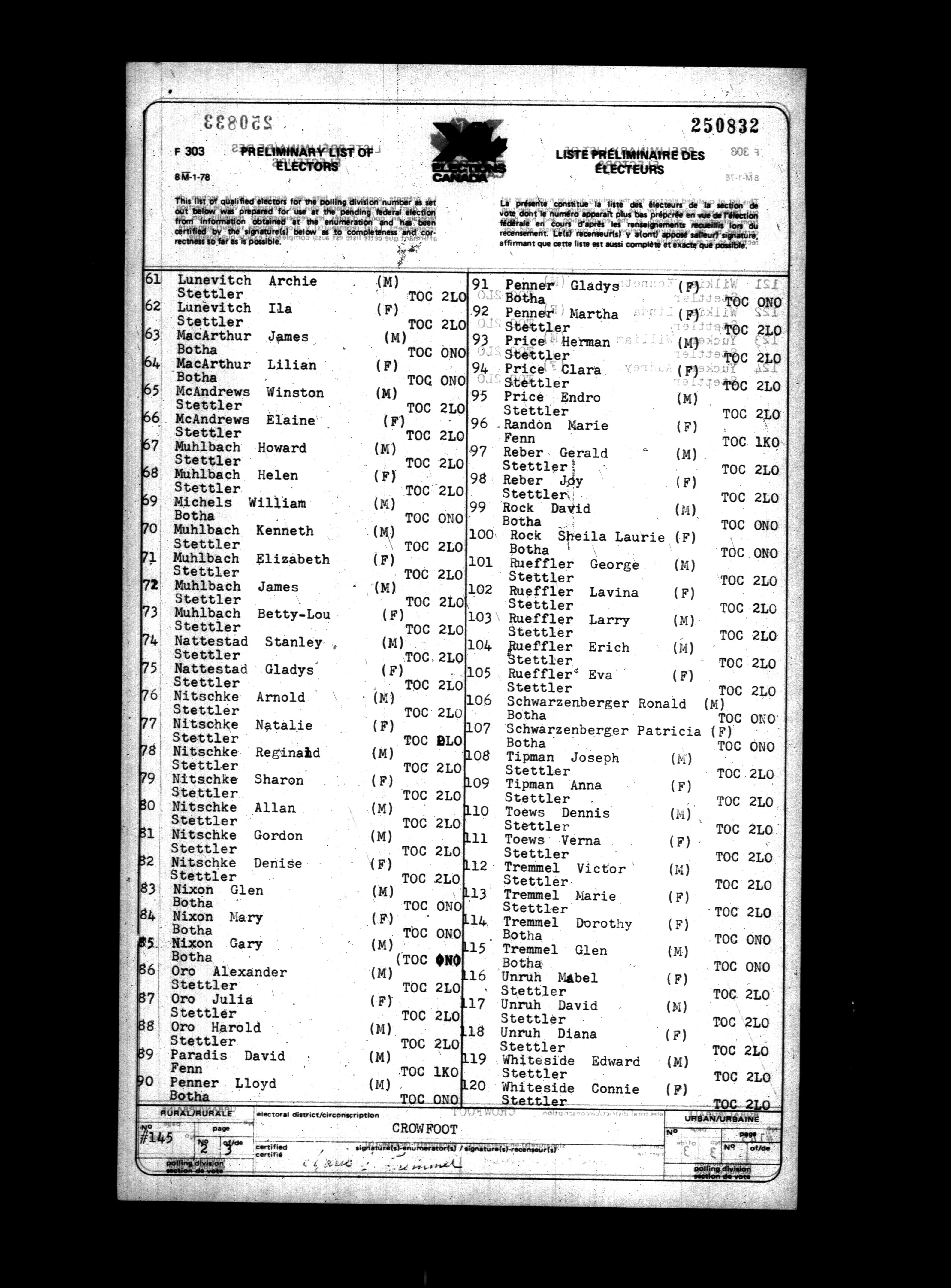 Voters' lists Alberta, 1979 - 698