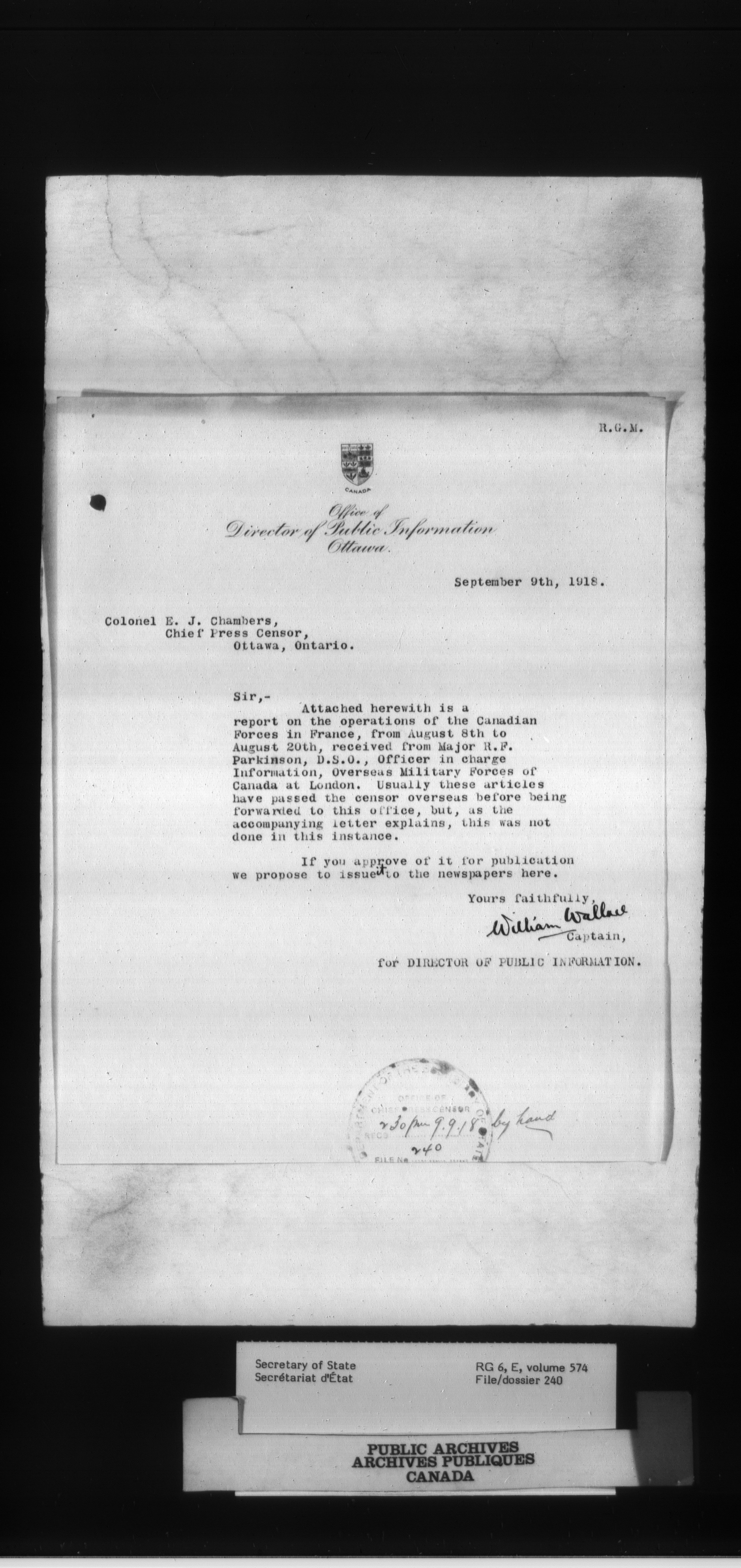 Secretary of State : Chief Press Censor, 1915-1920 - 70