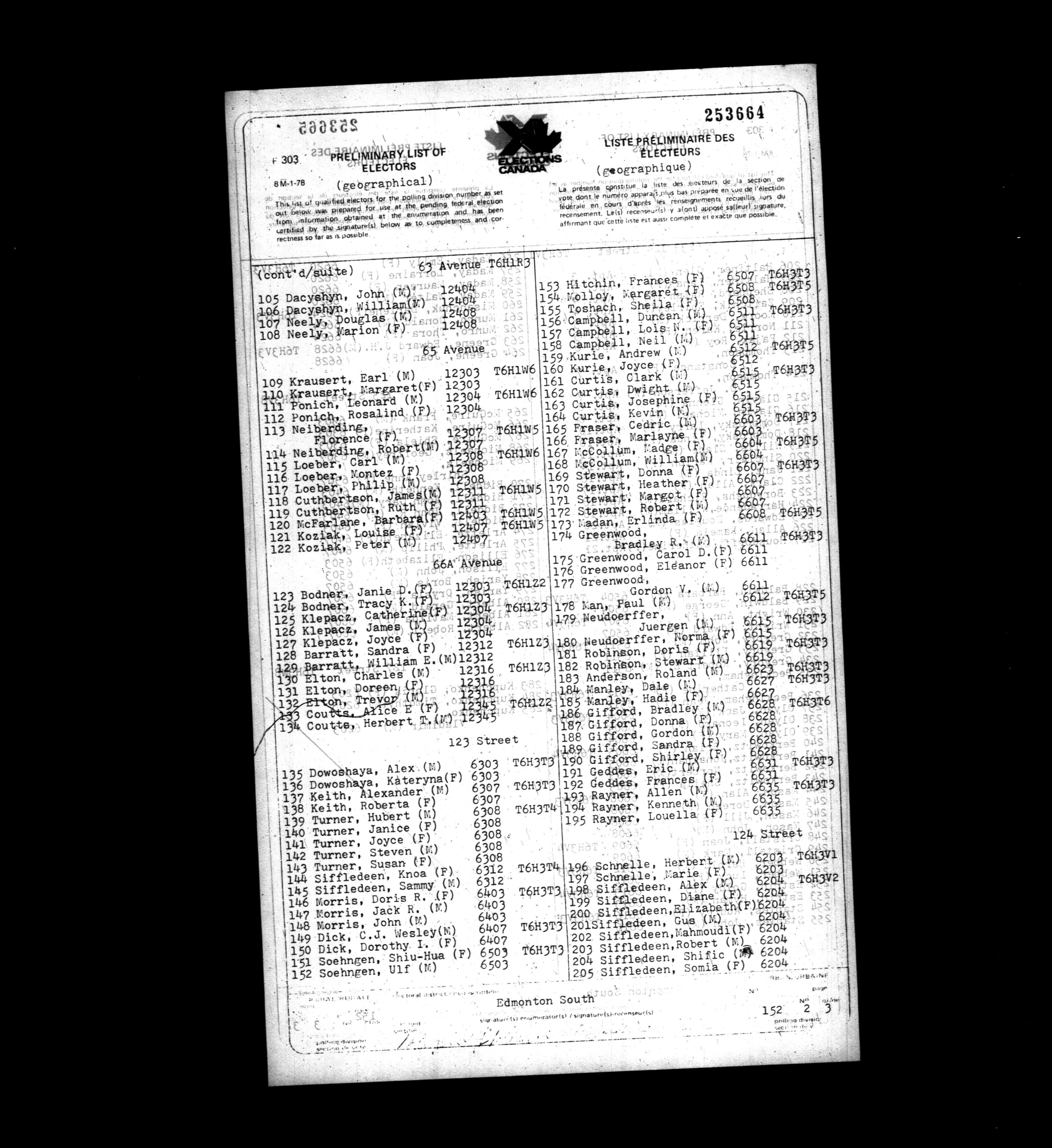 Office of the Chief Electoral Officer : Preliminary List of Electors : T-700